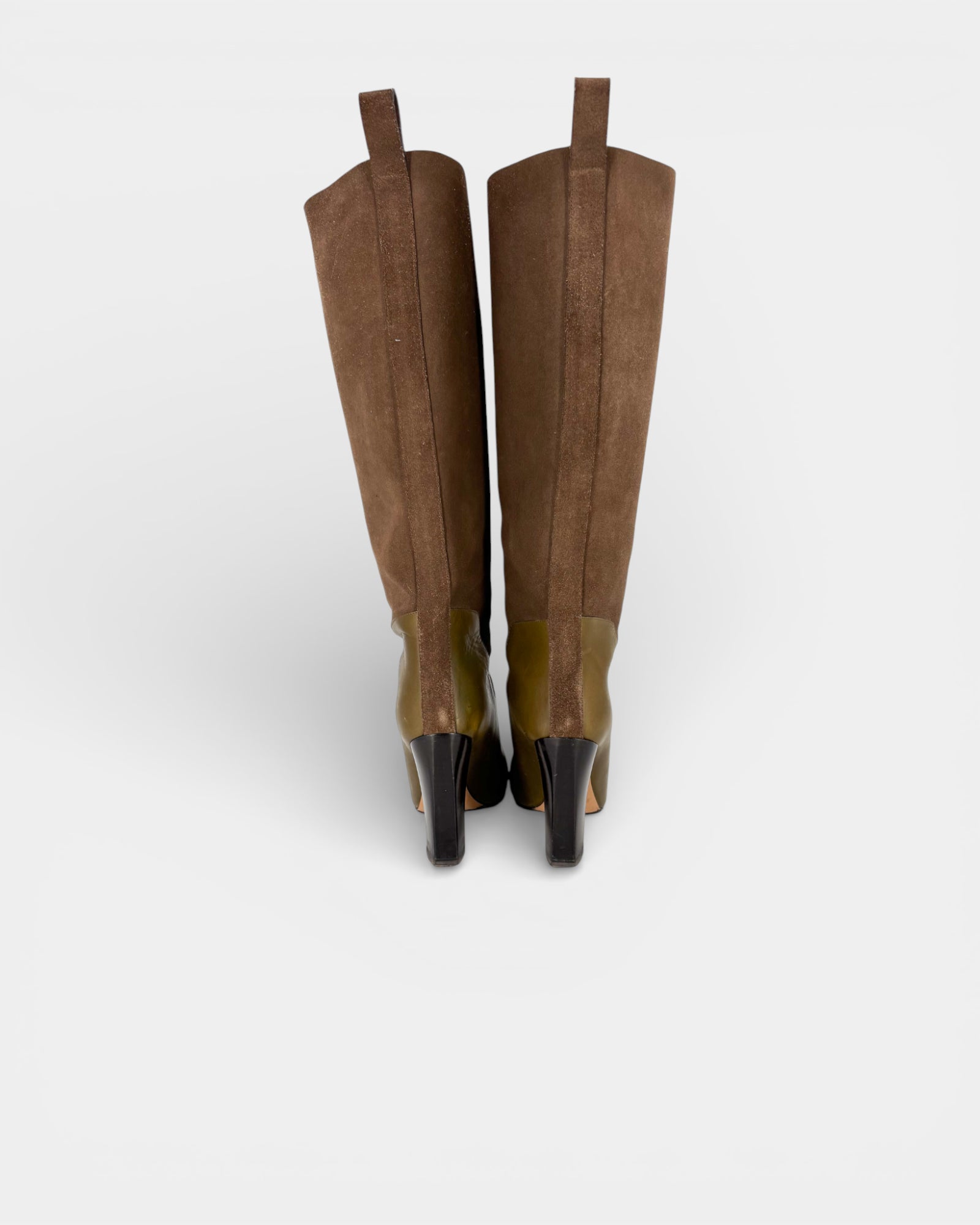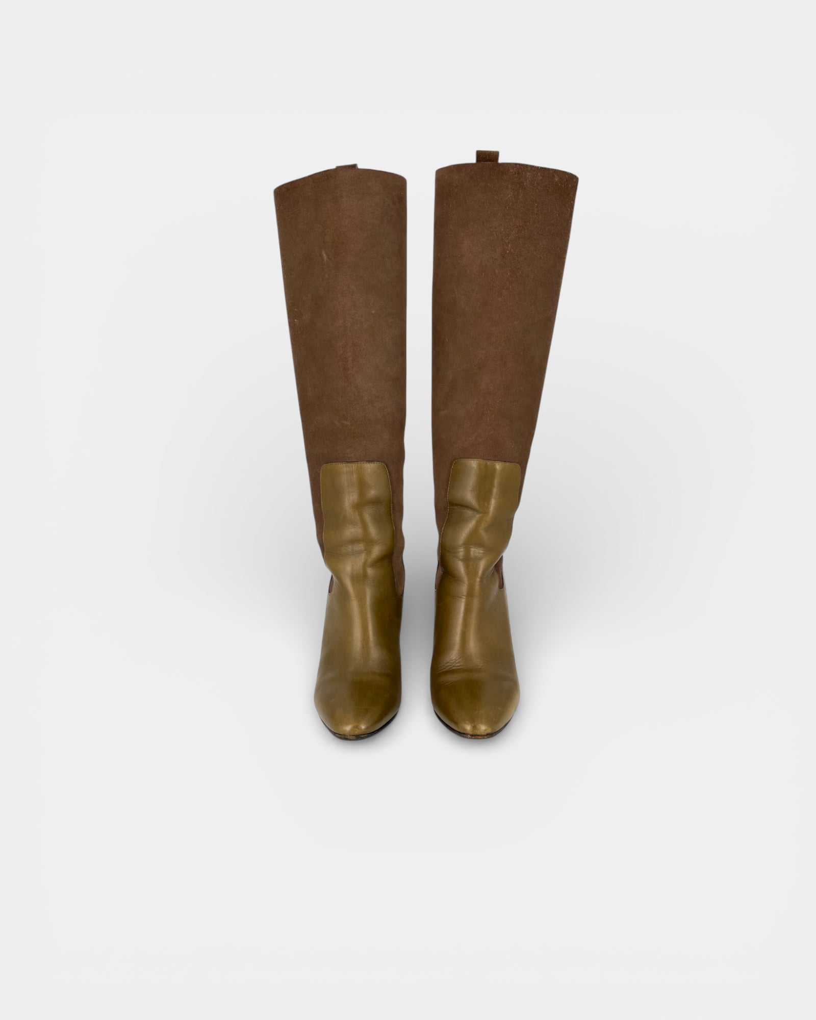Khaki leather and suede boots