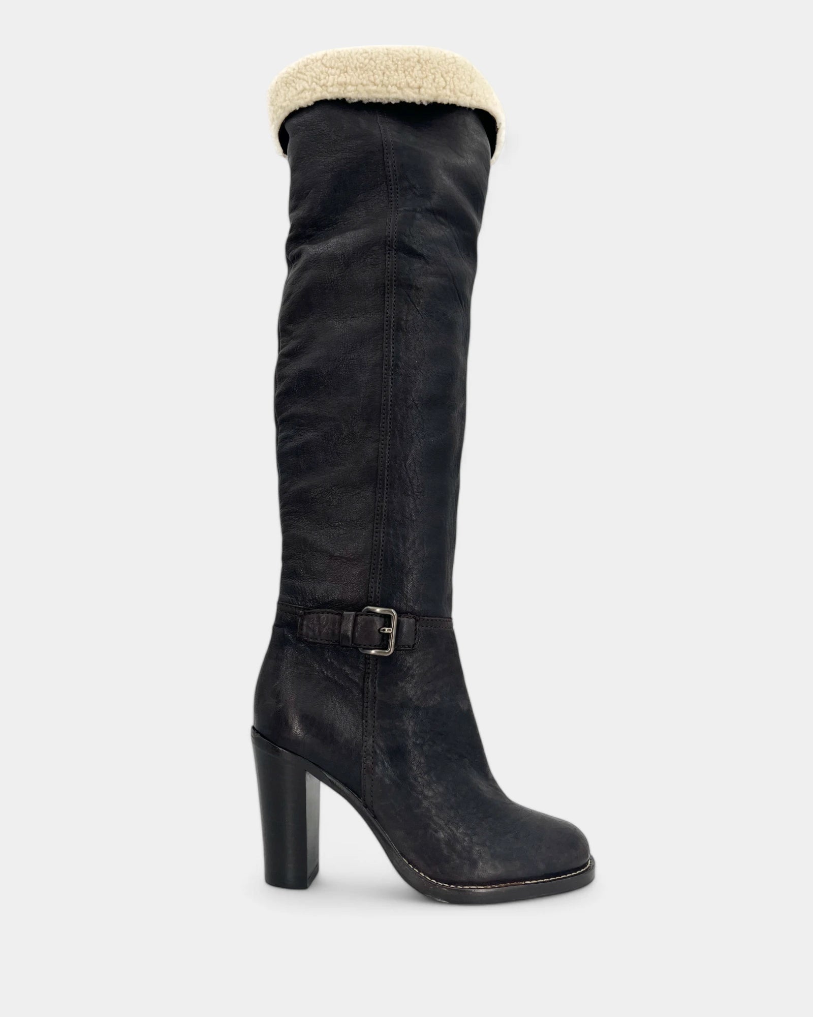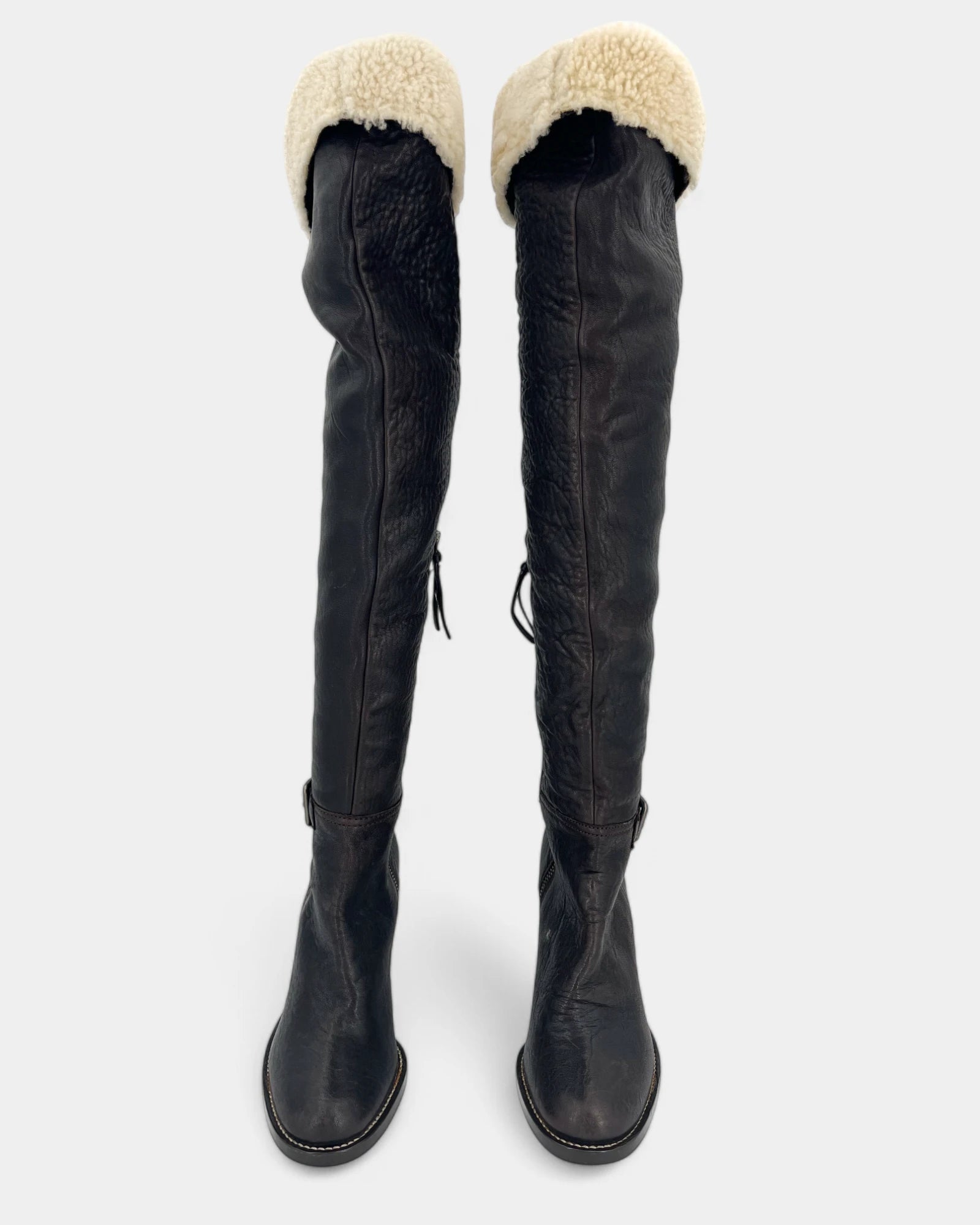 Brown sheepskin thigh boots