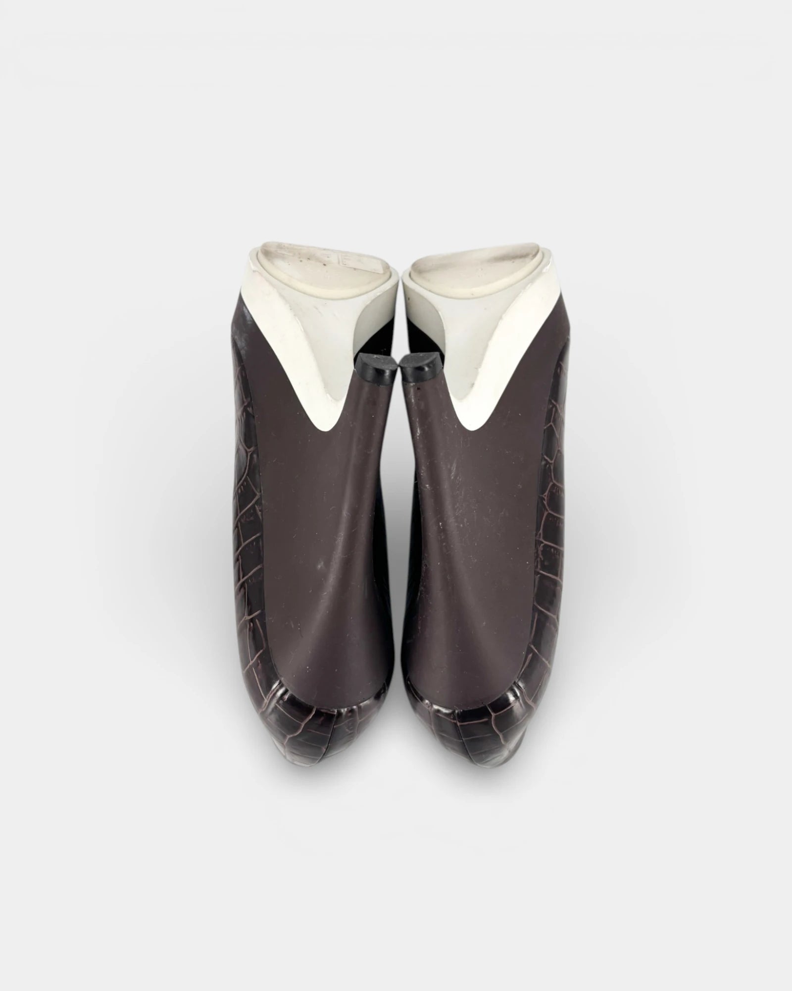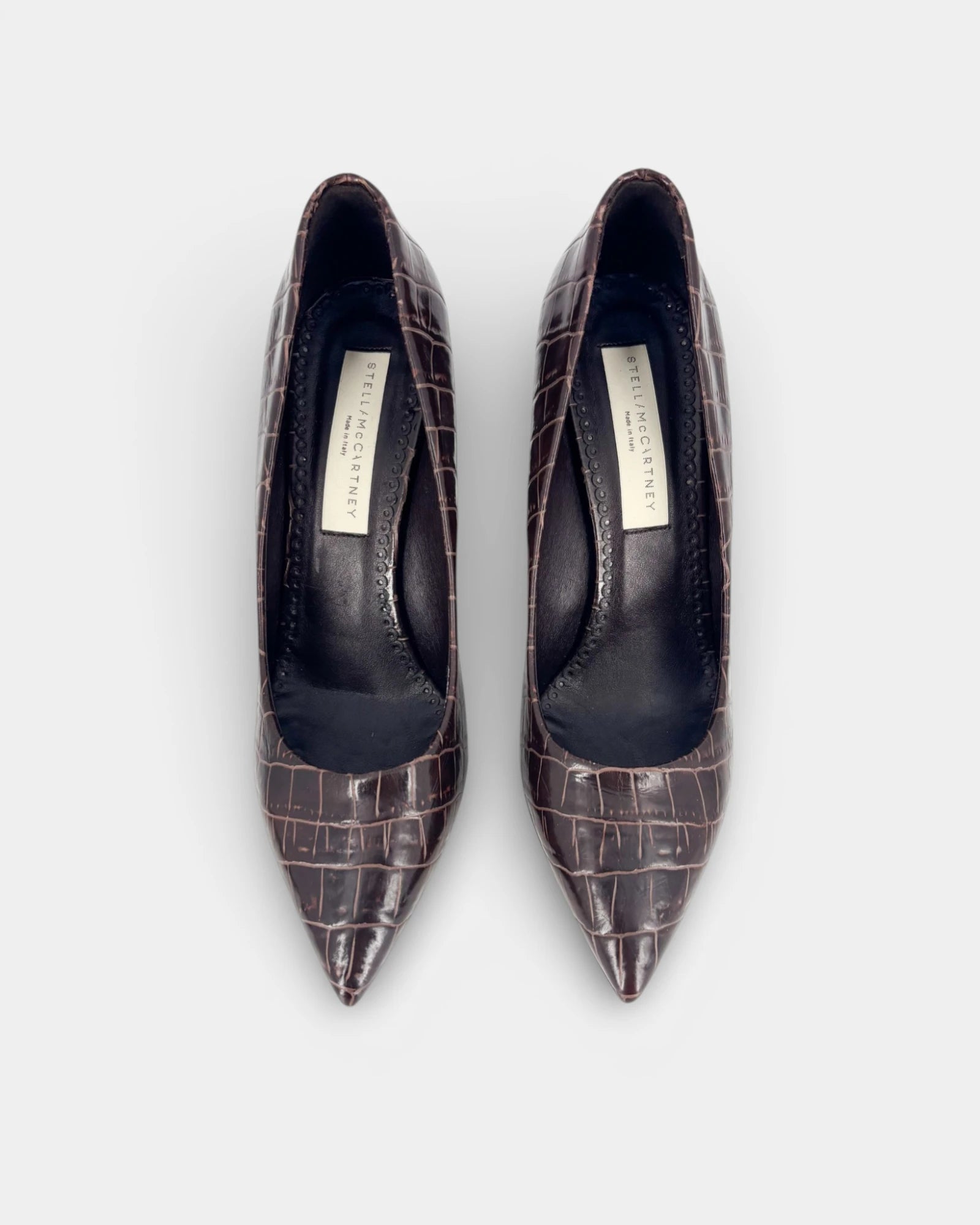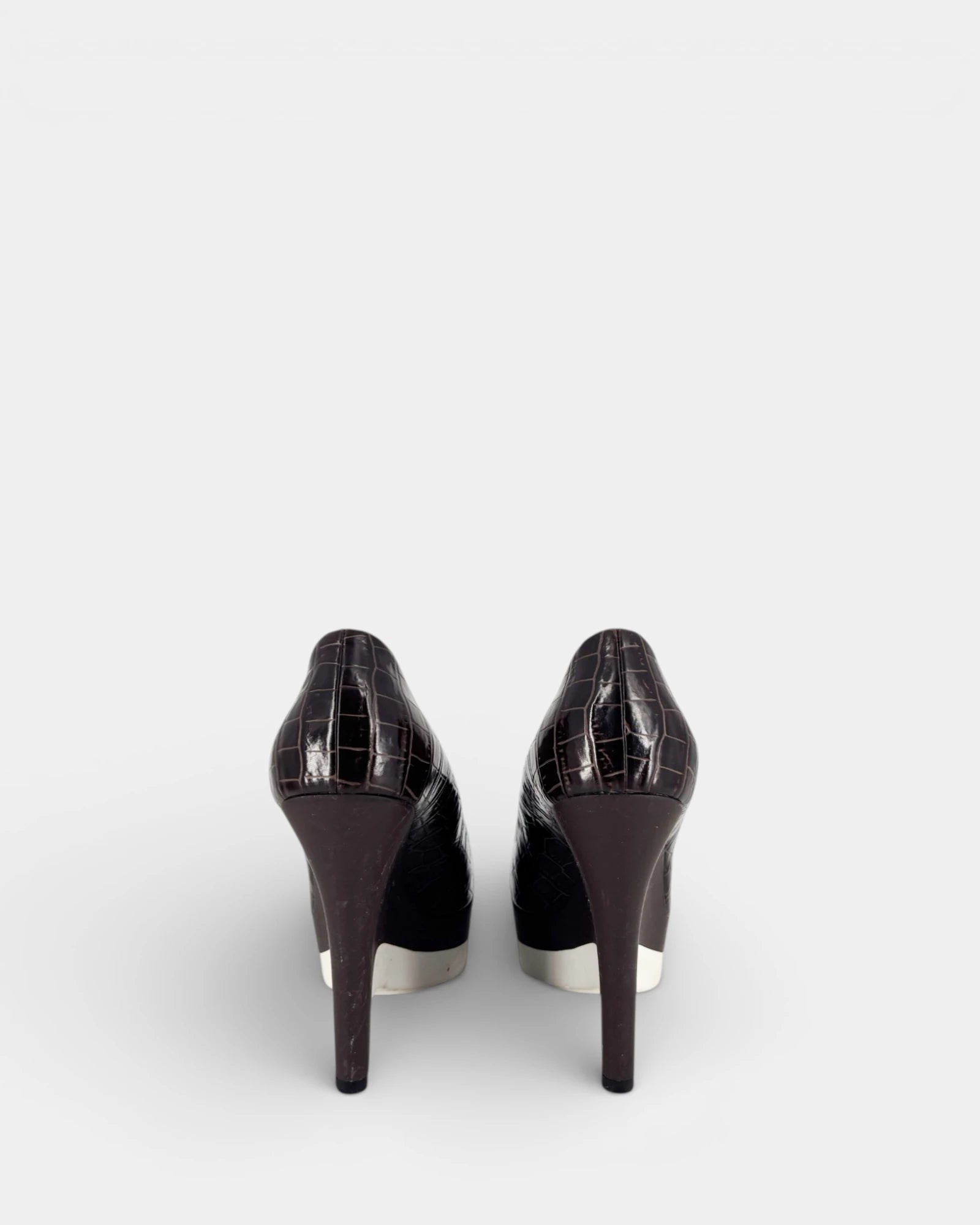 Escarpins en cuir vegan effet croco marron à talon compensé