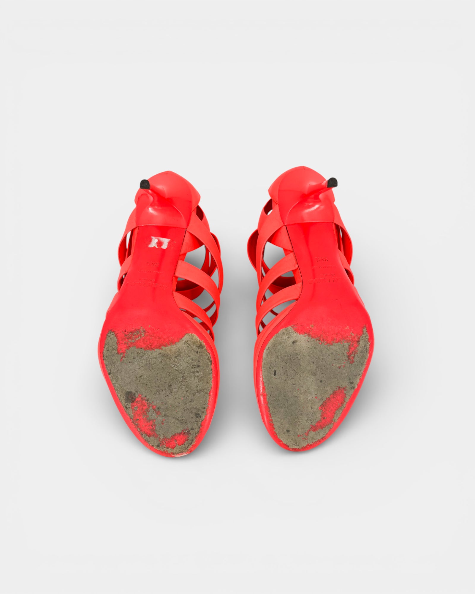 Orange strappy sandals with heel
