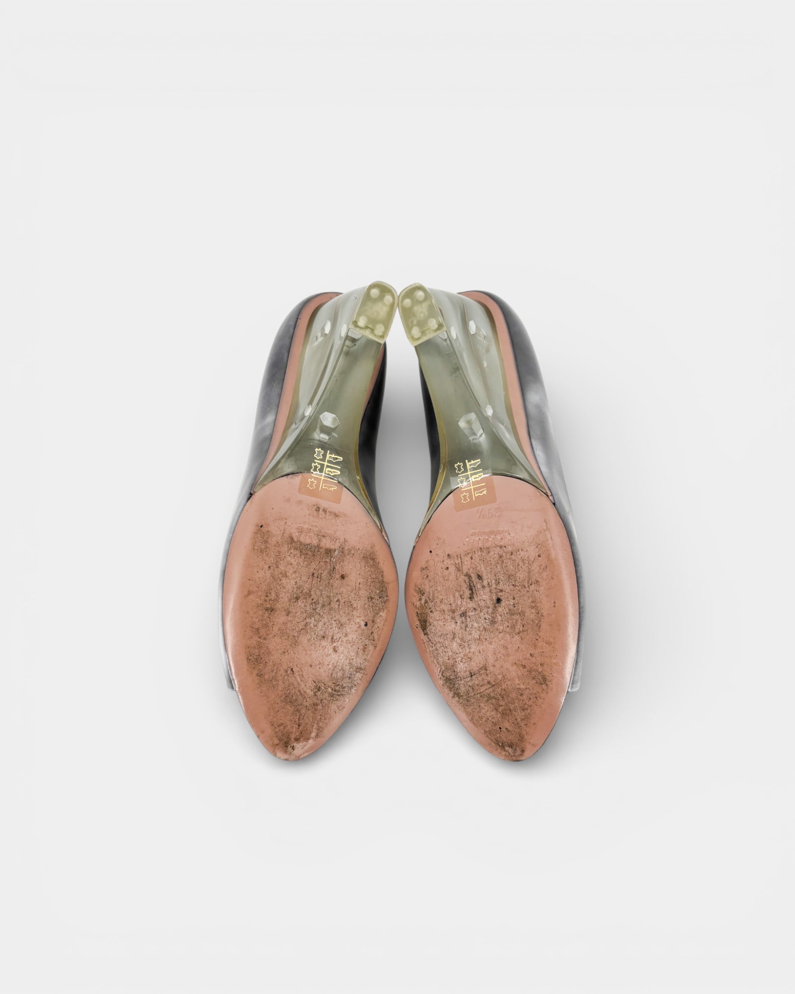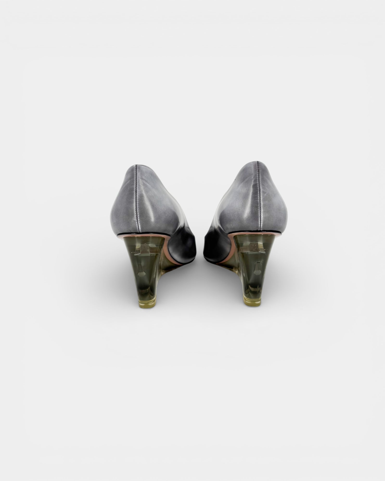 Grey leather pumps with plexi wedge heels