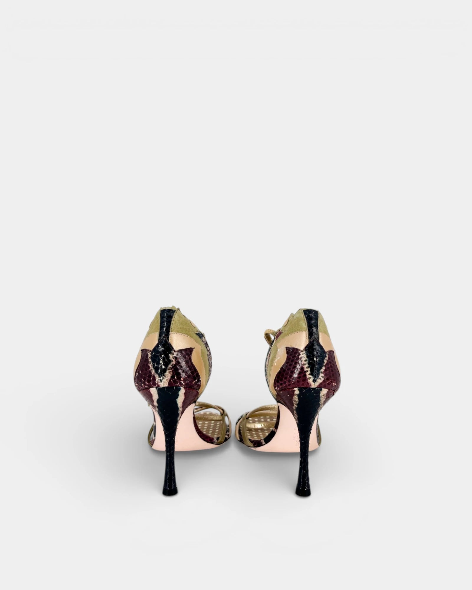 Sandales à brides en cuir multicolore et effet reptile