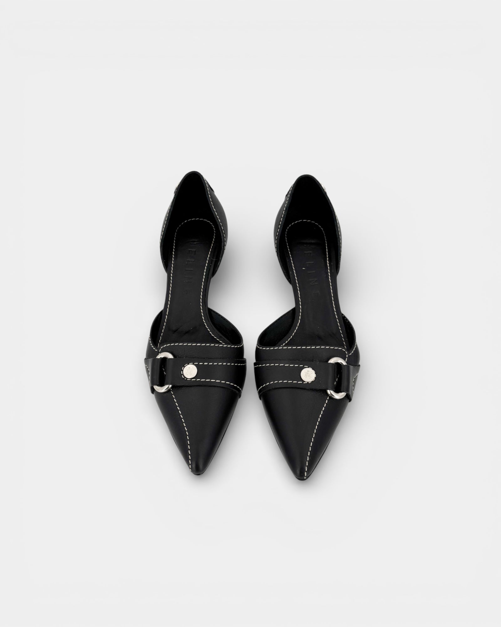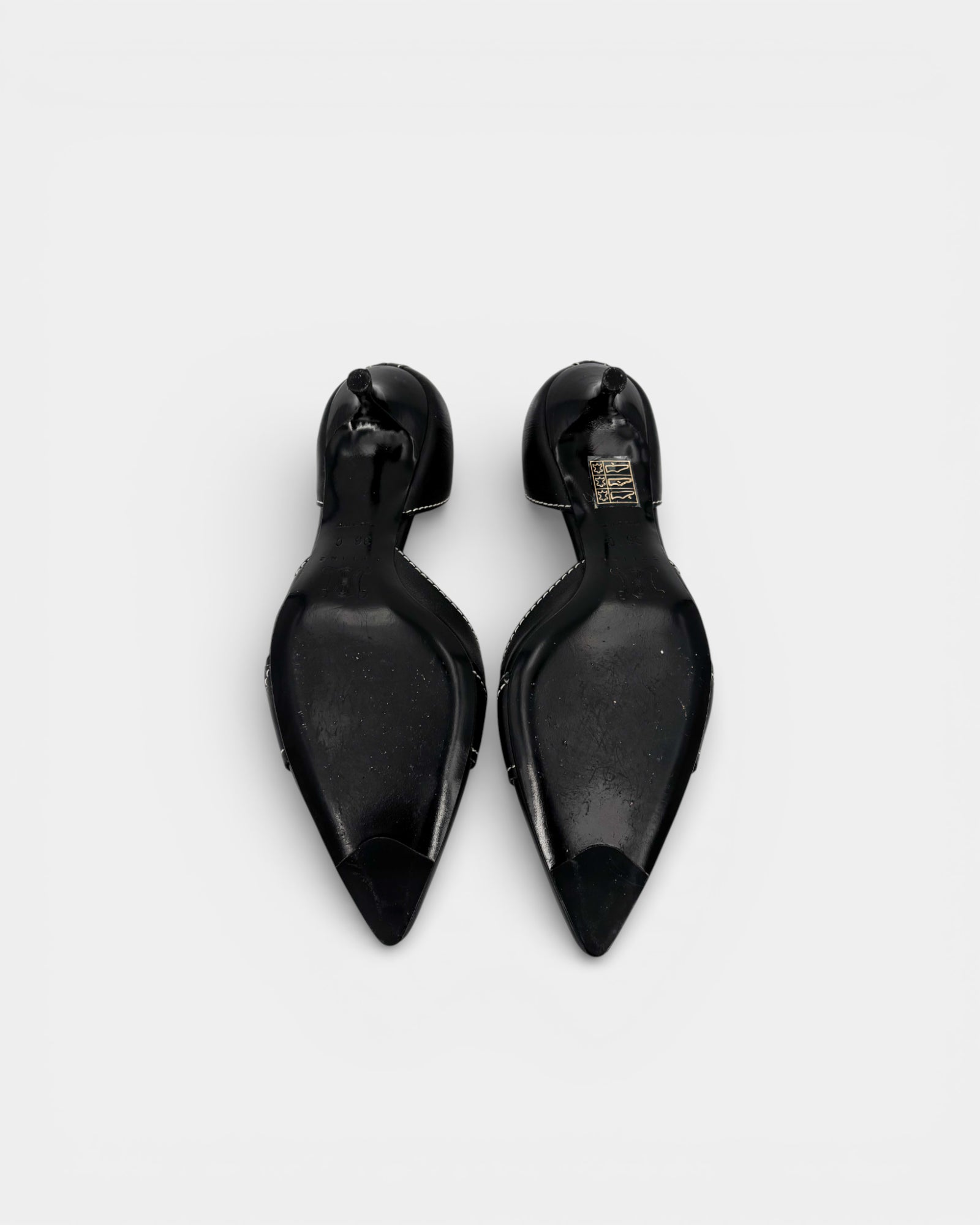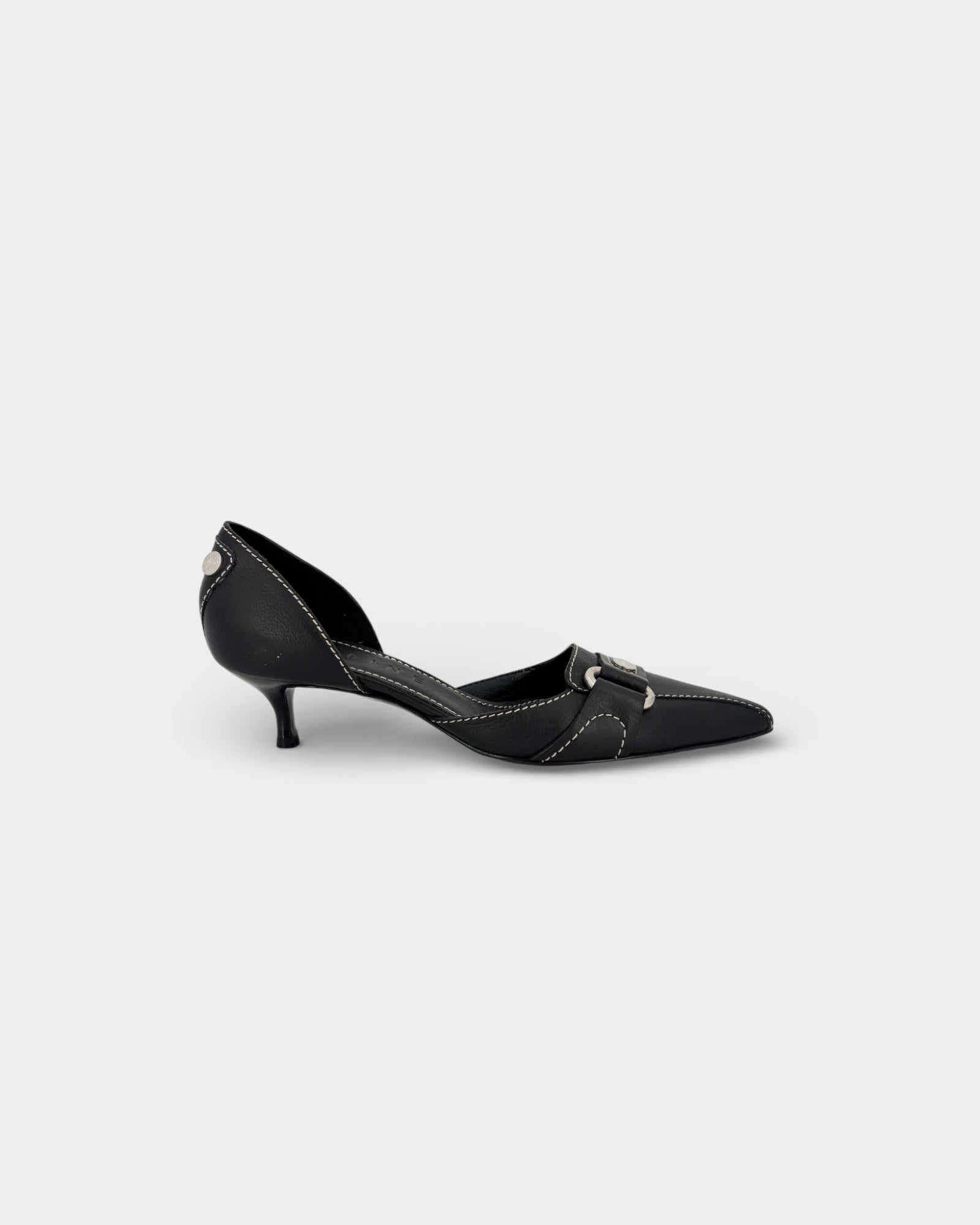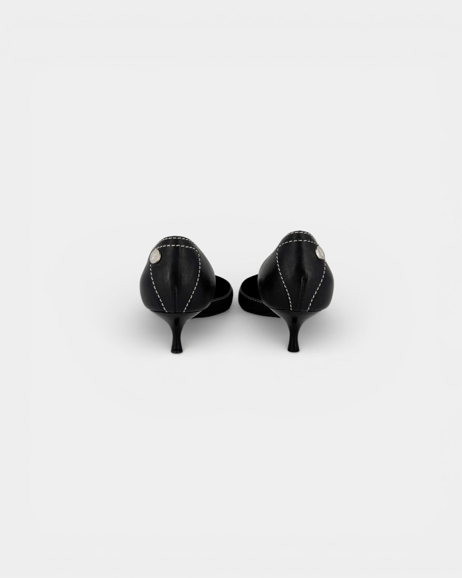 Black leather pumps