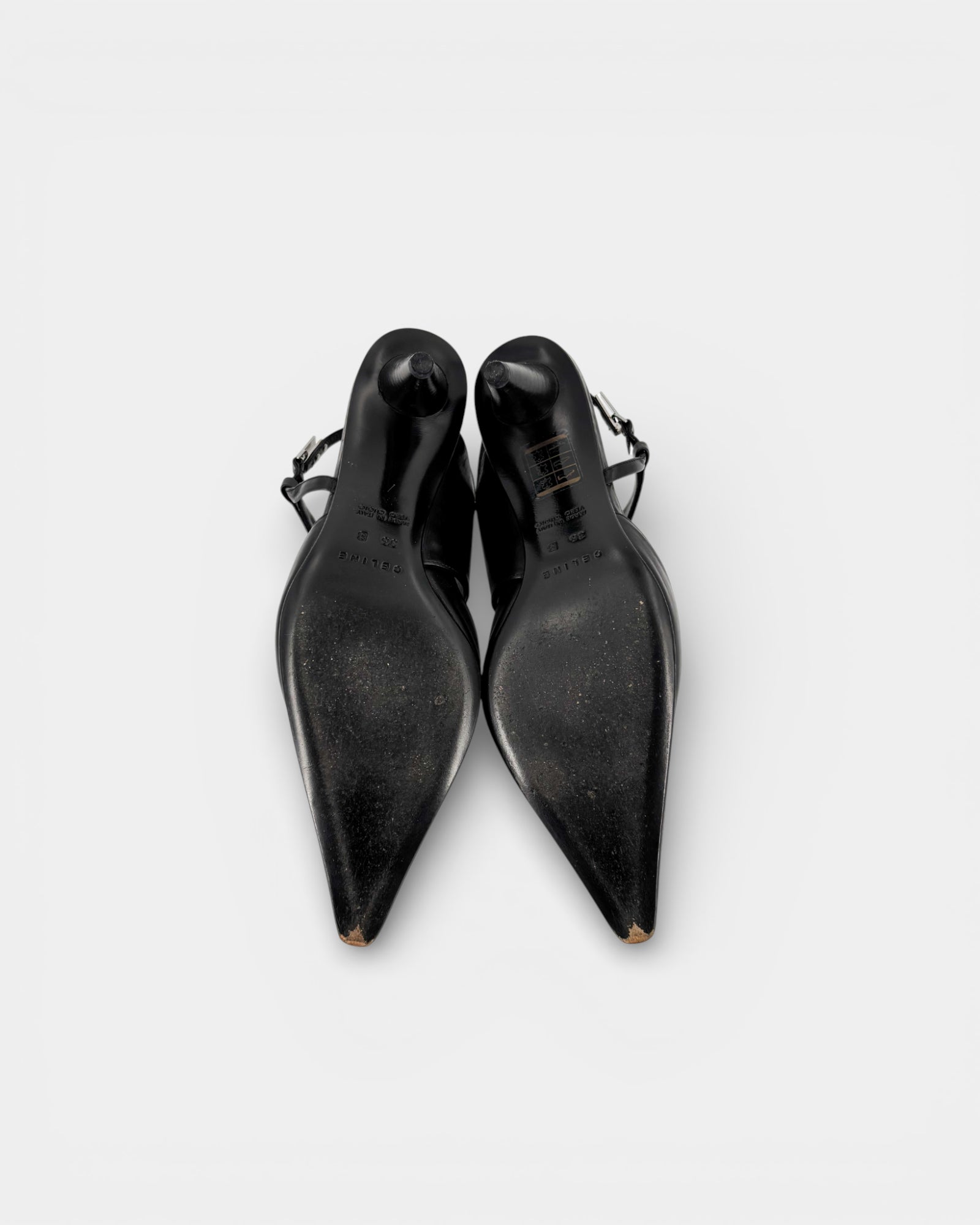 Black leather pumps