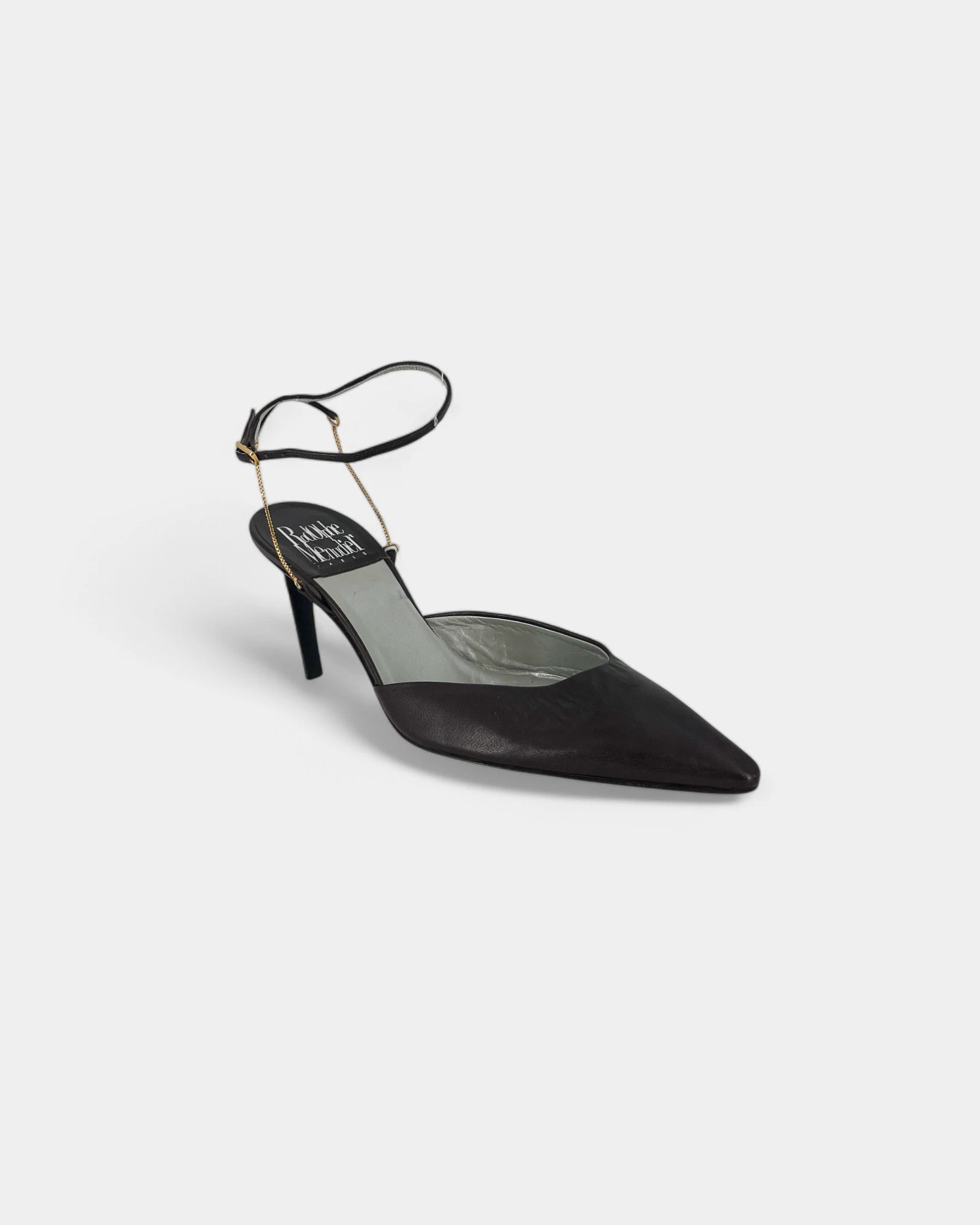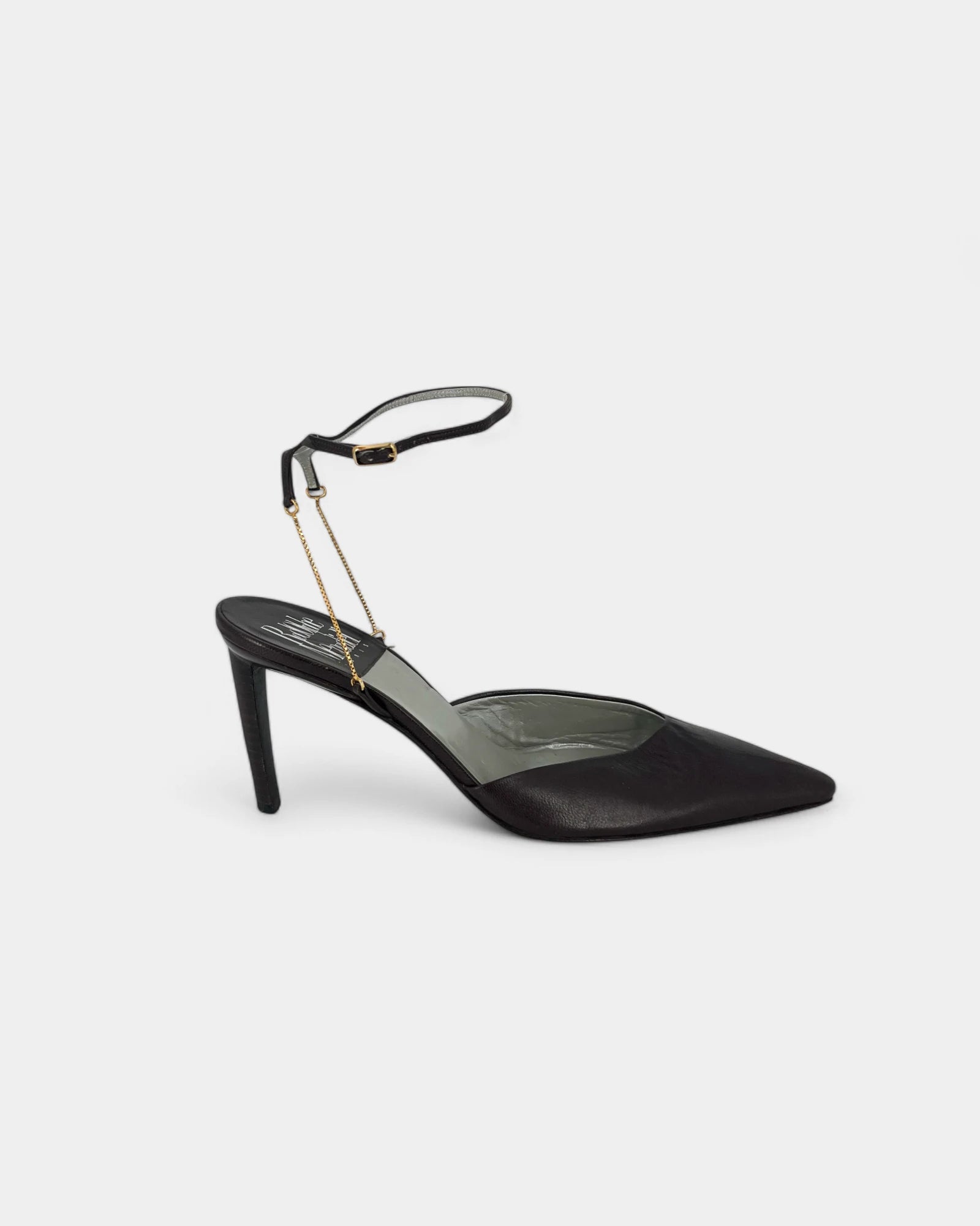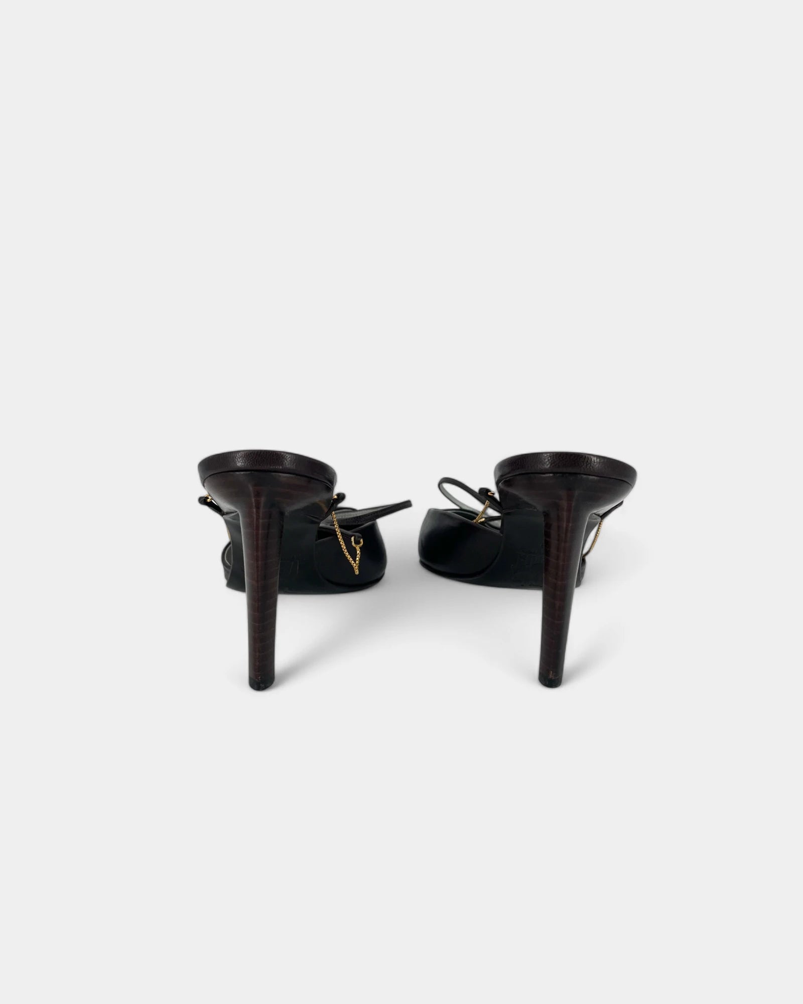Brown pumps with a gold chain