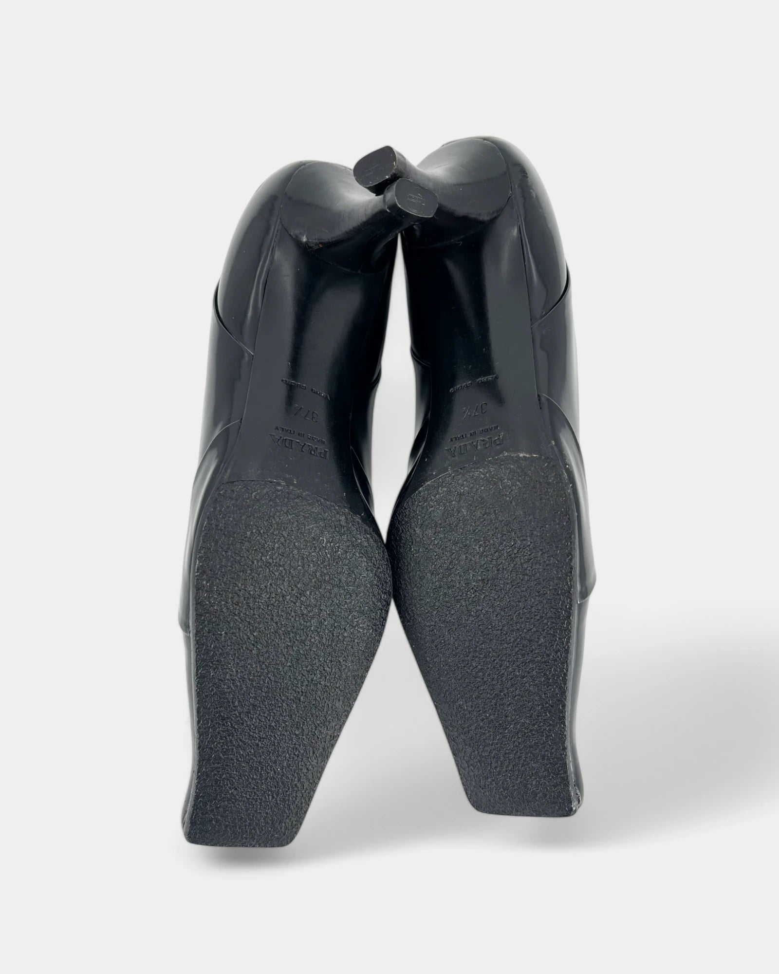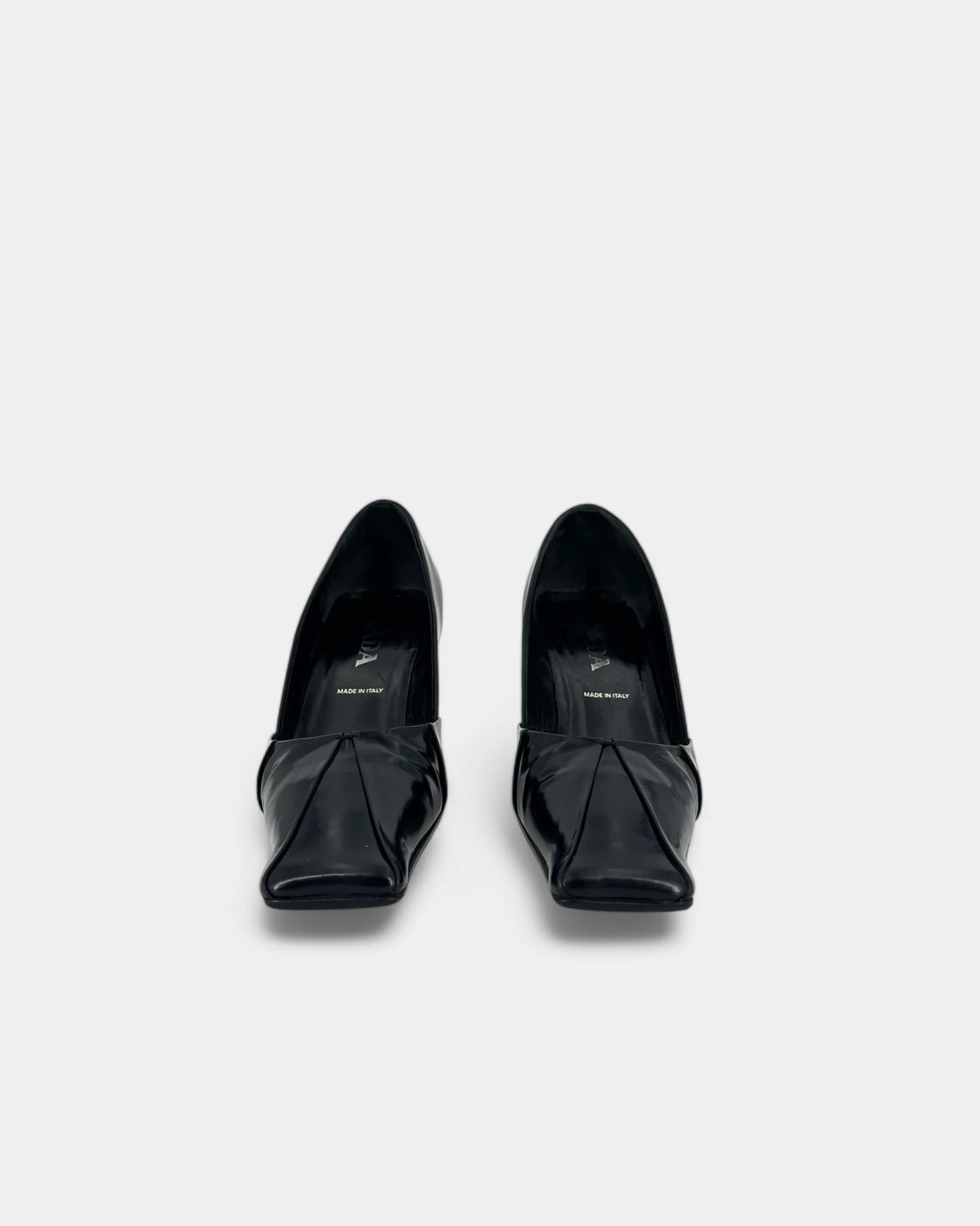Black square toe pumps