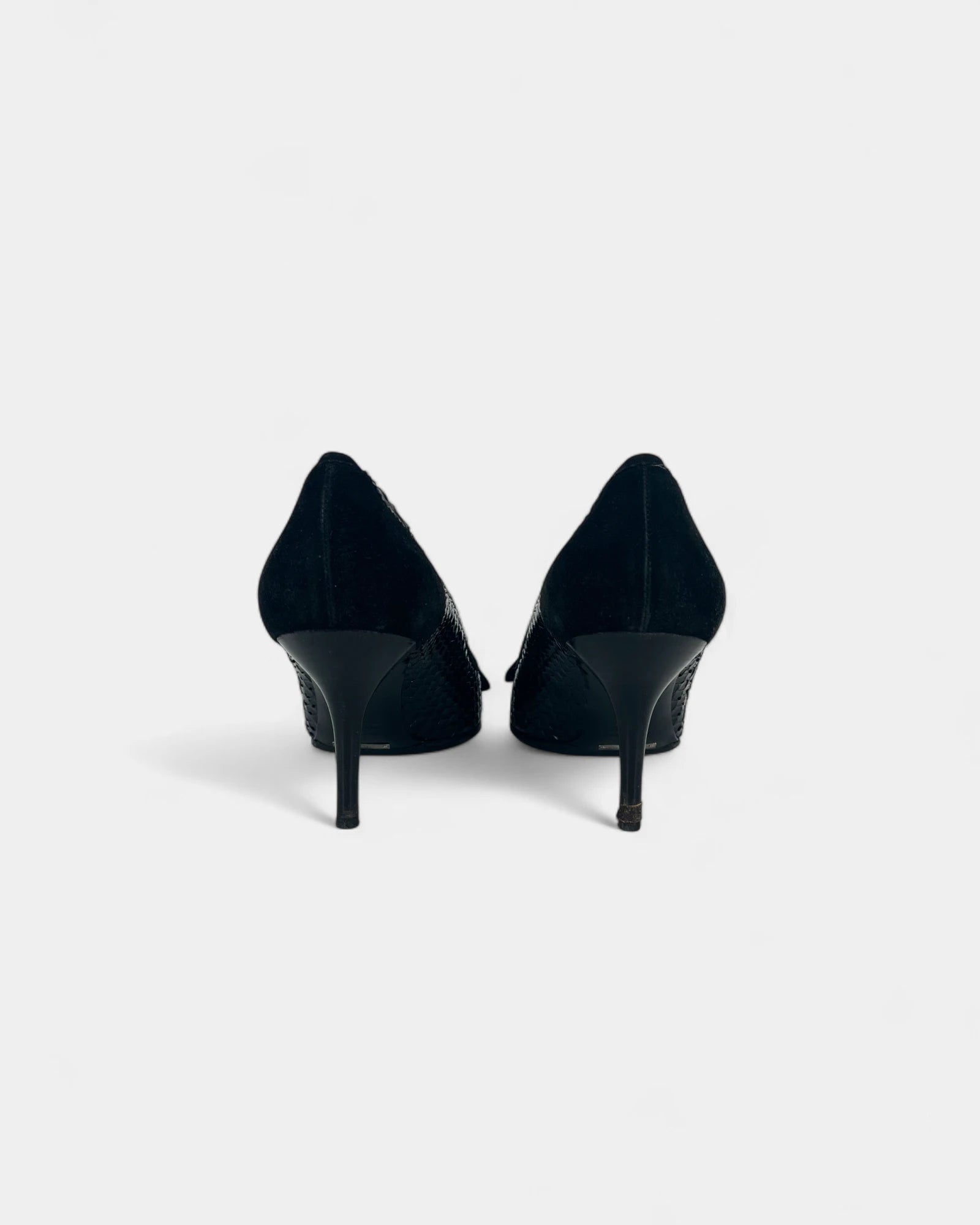 Black crocodile-effect pumps