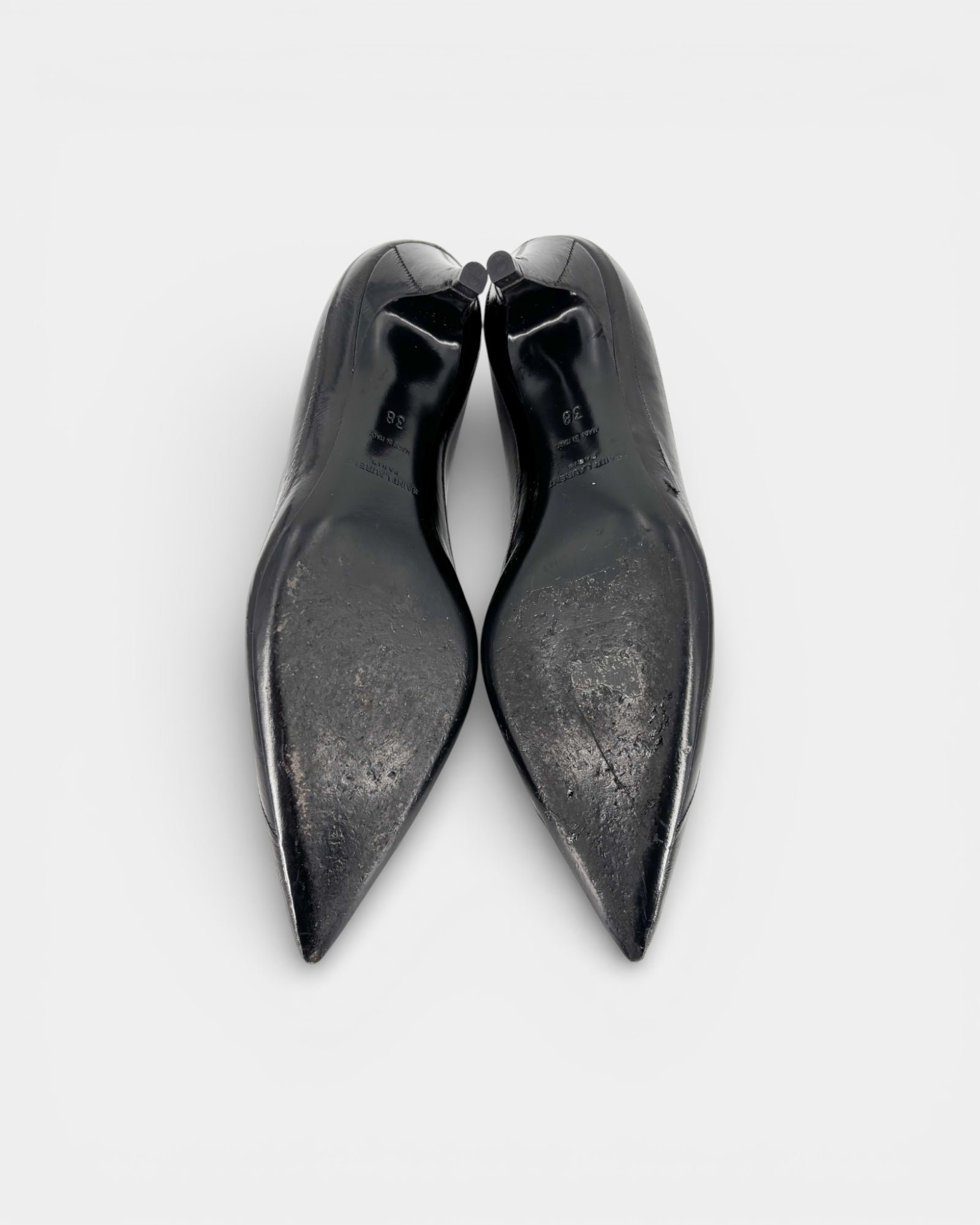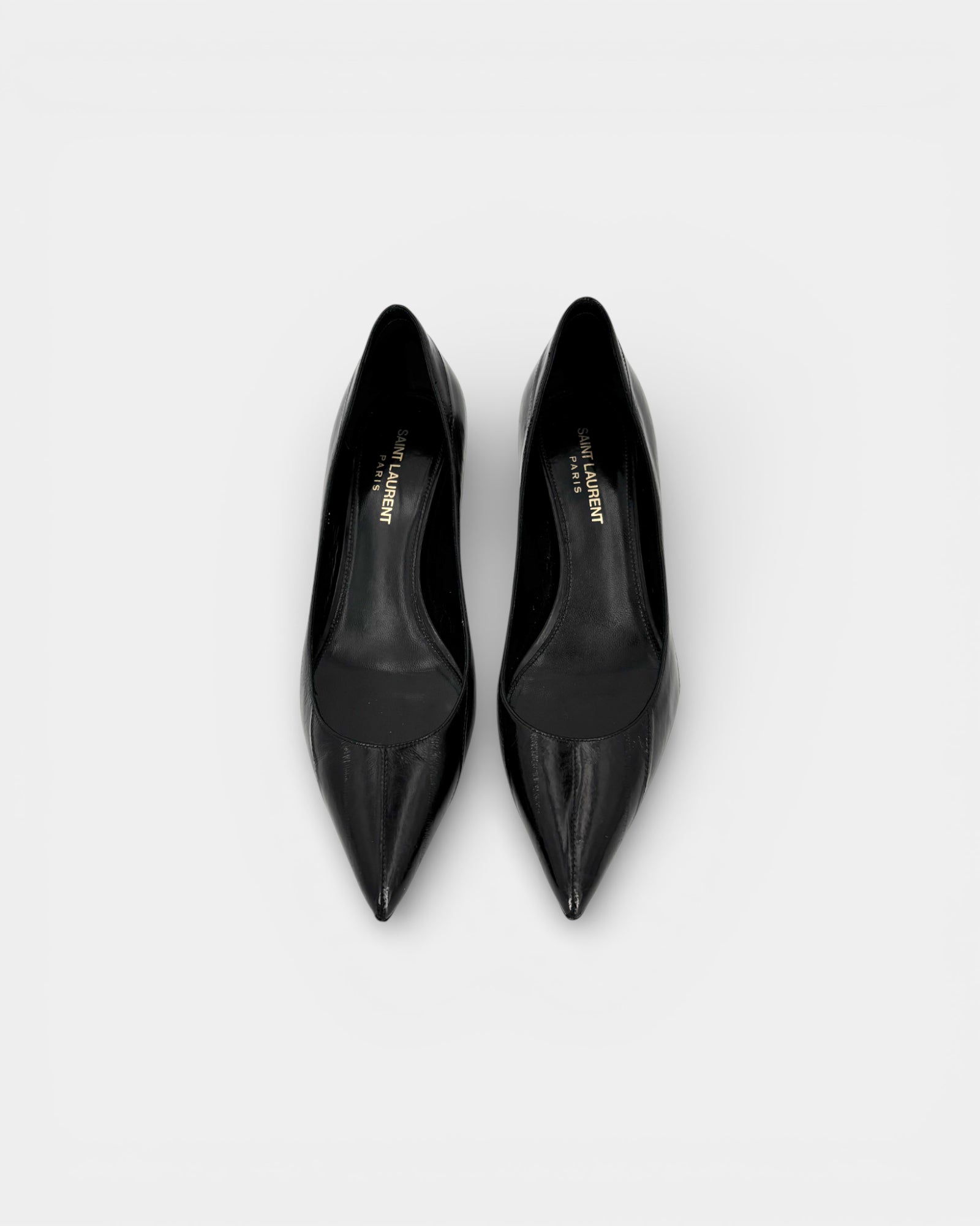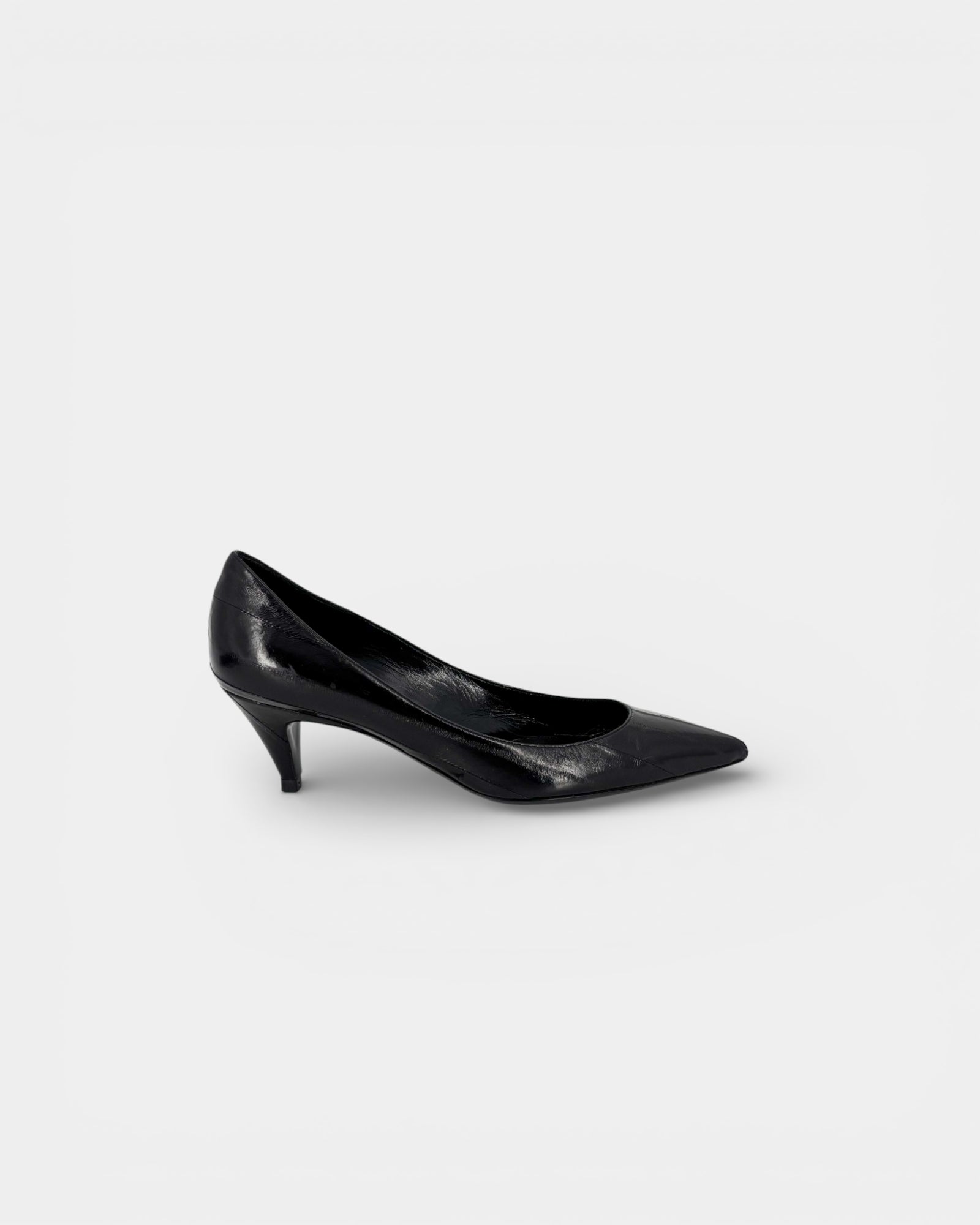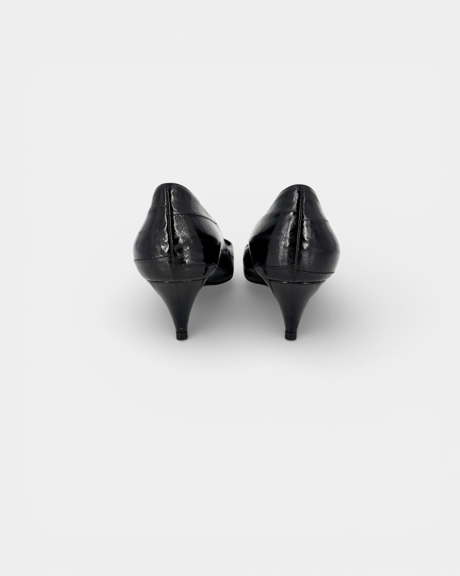 Black patent leather pumps