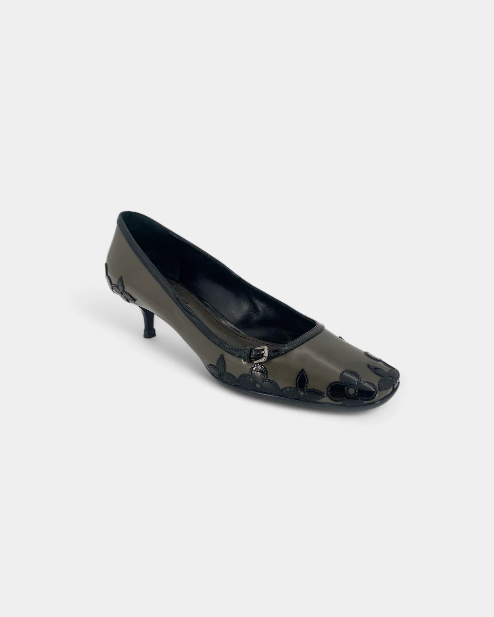 Grey patent leather pumps