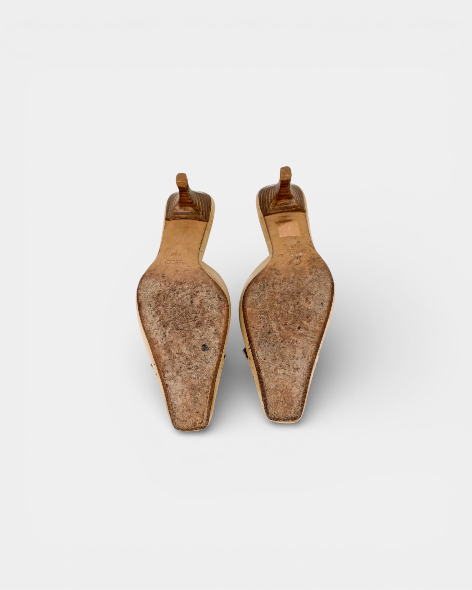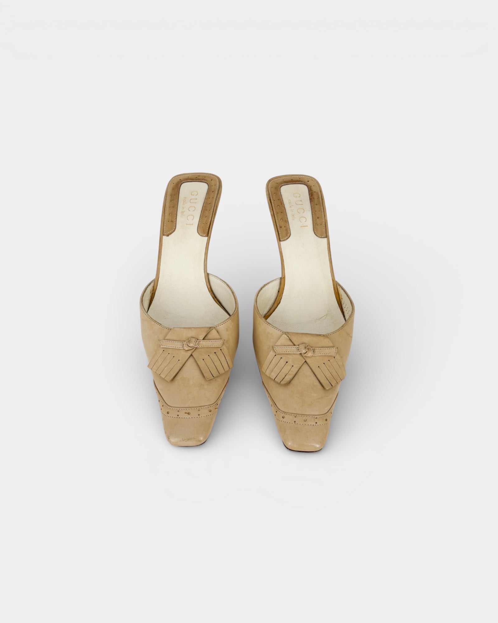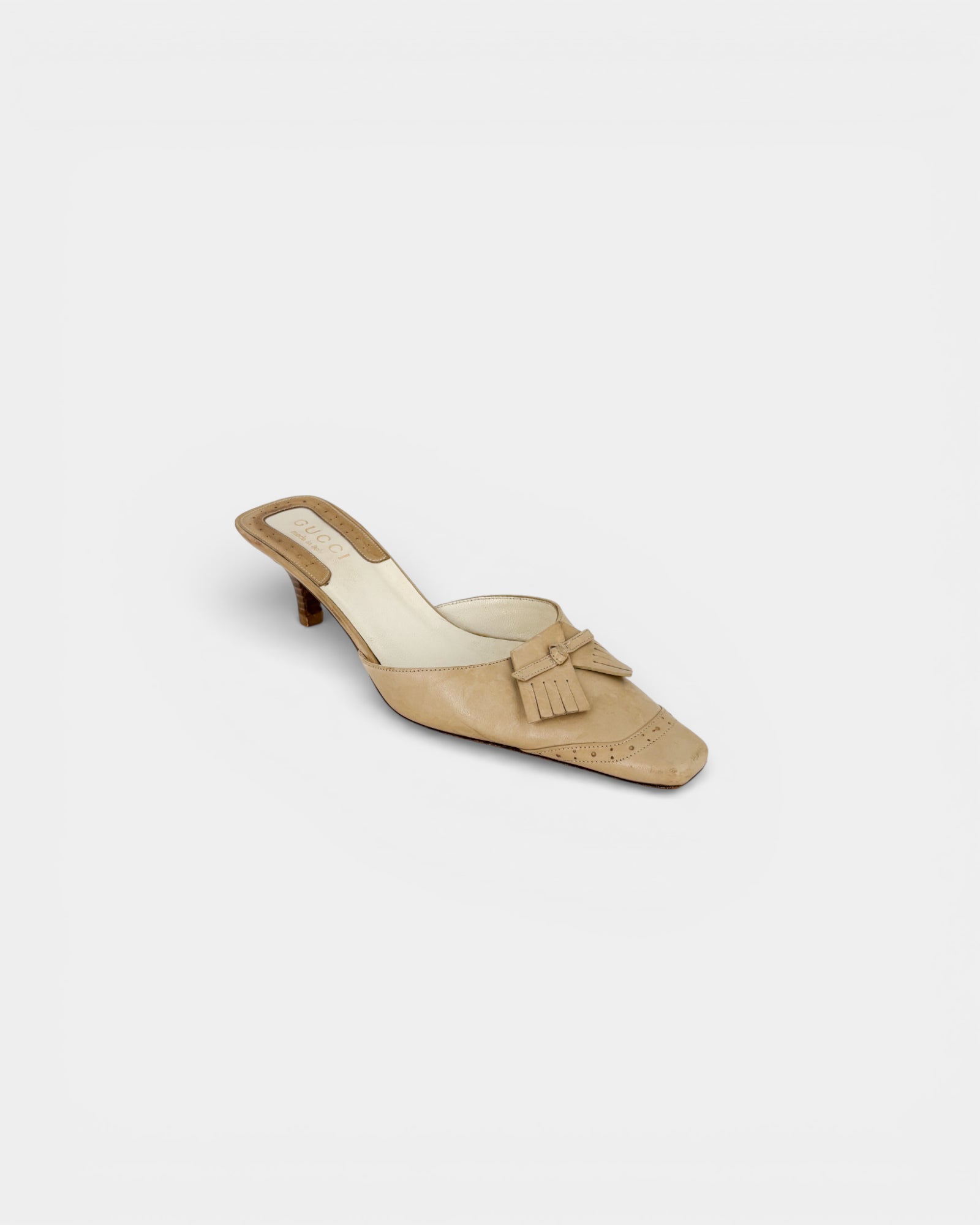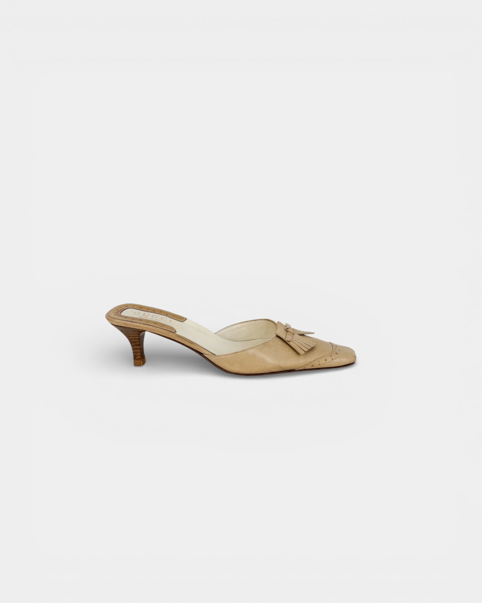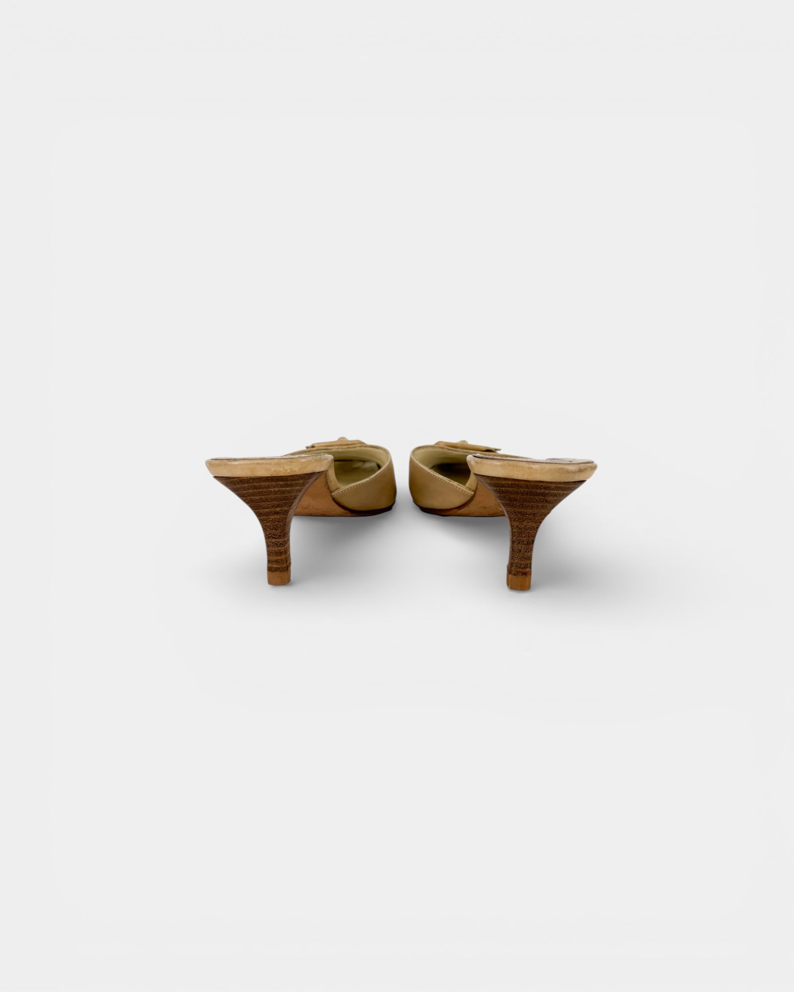 Beige leather heeled mules