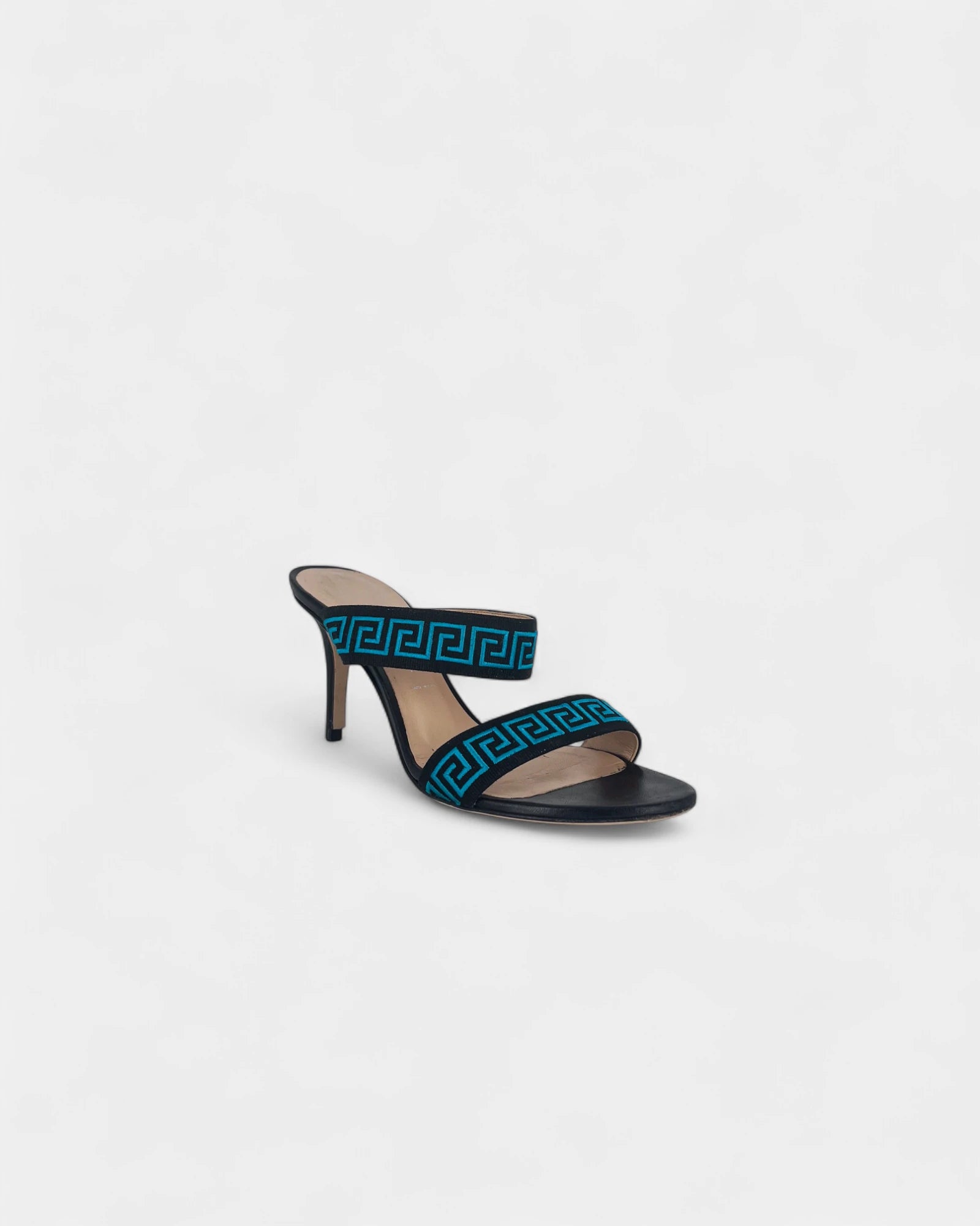 Graphic black and blue mules