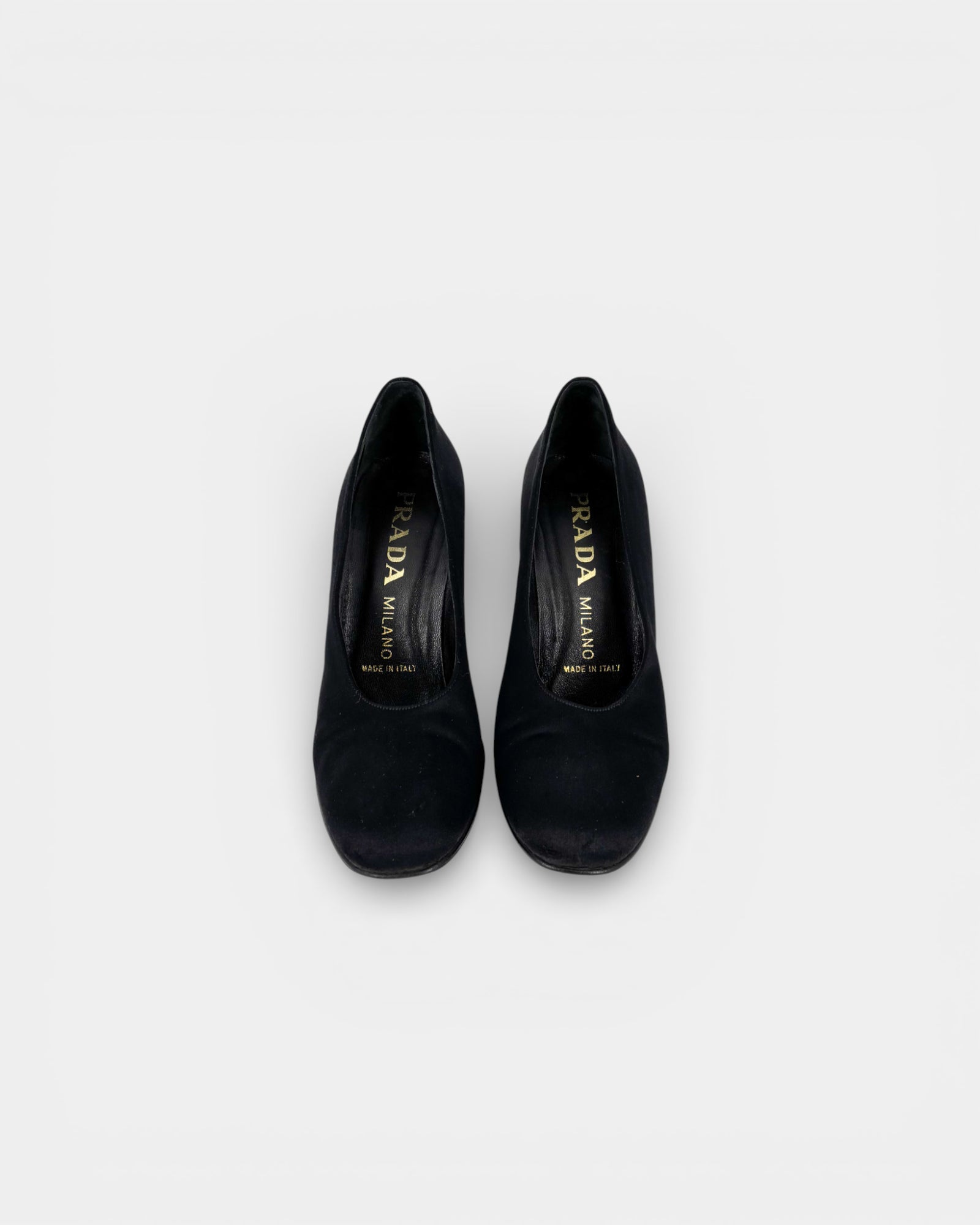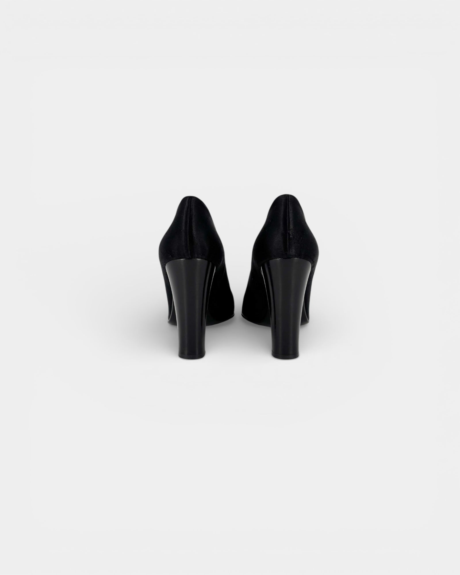 black satin pumps
