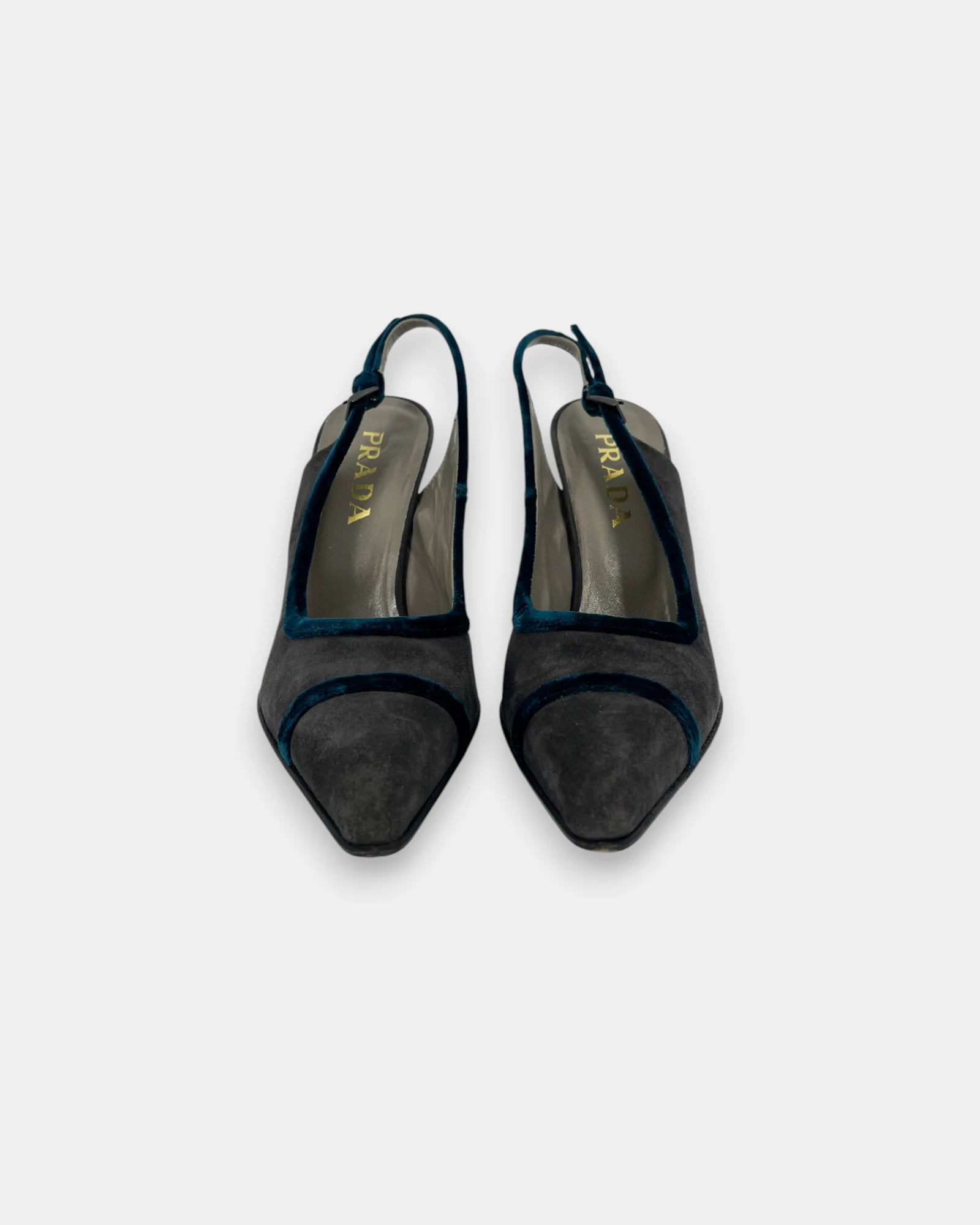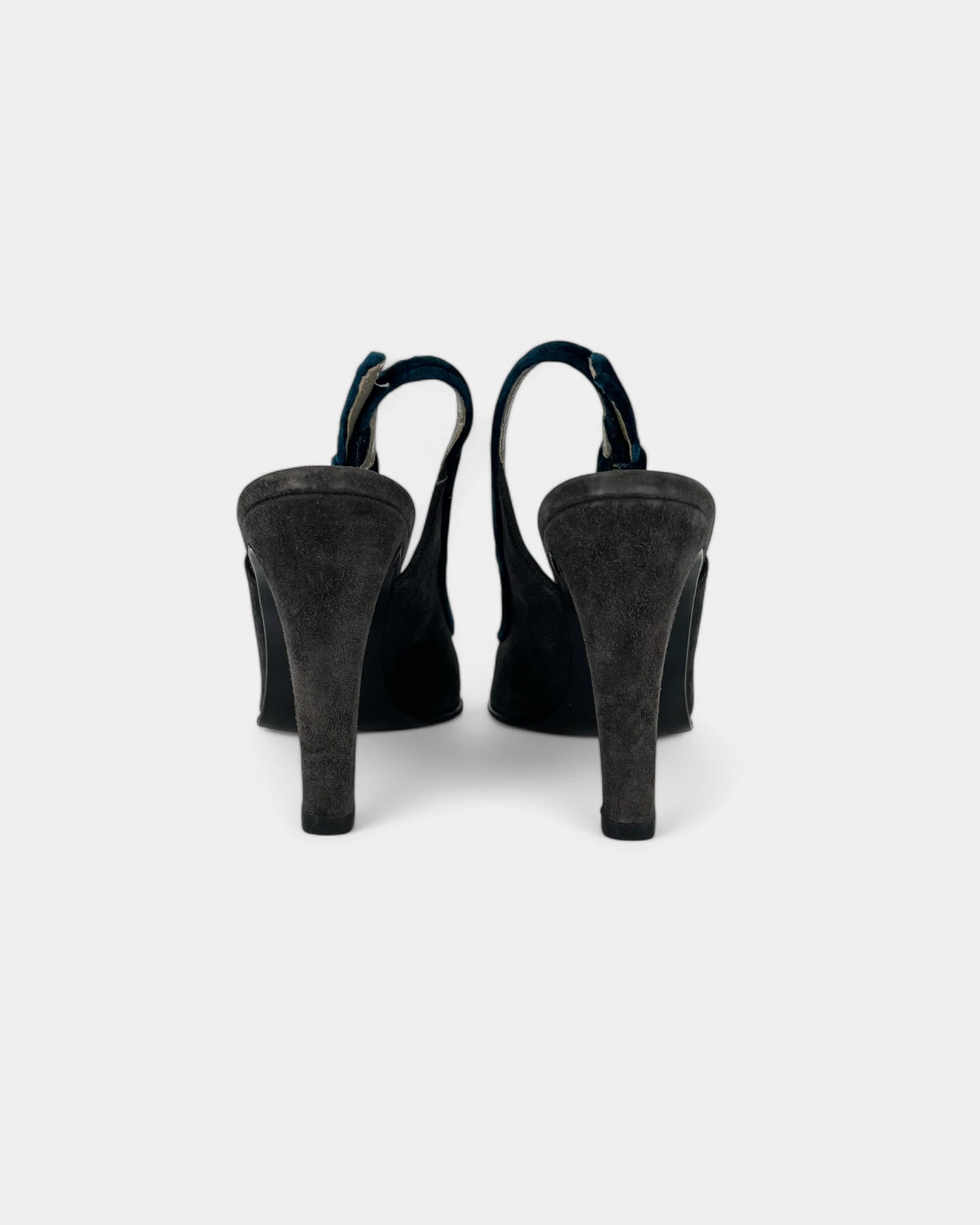 Two-tone slingbacks in gray and blue suede