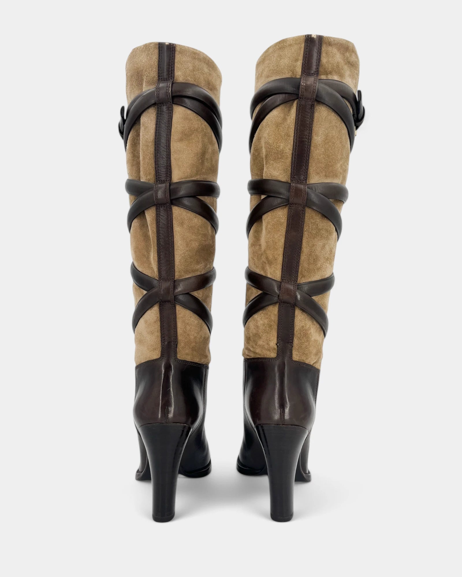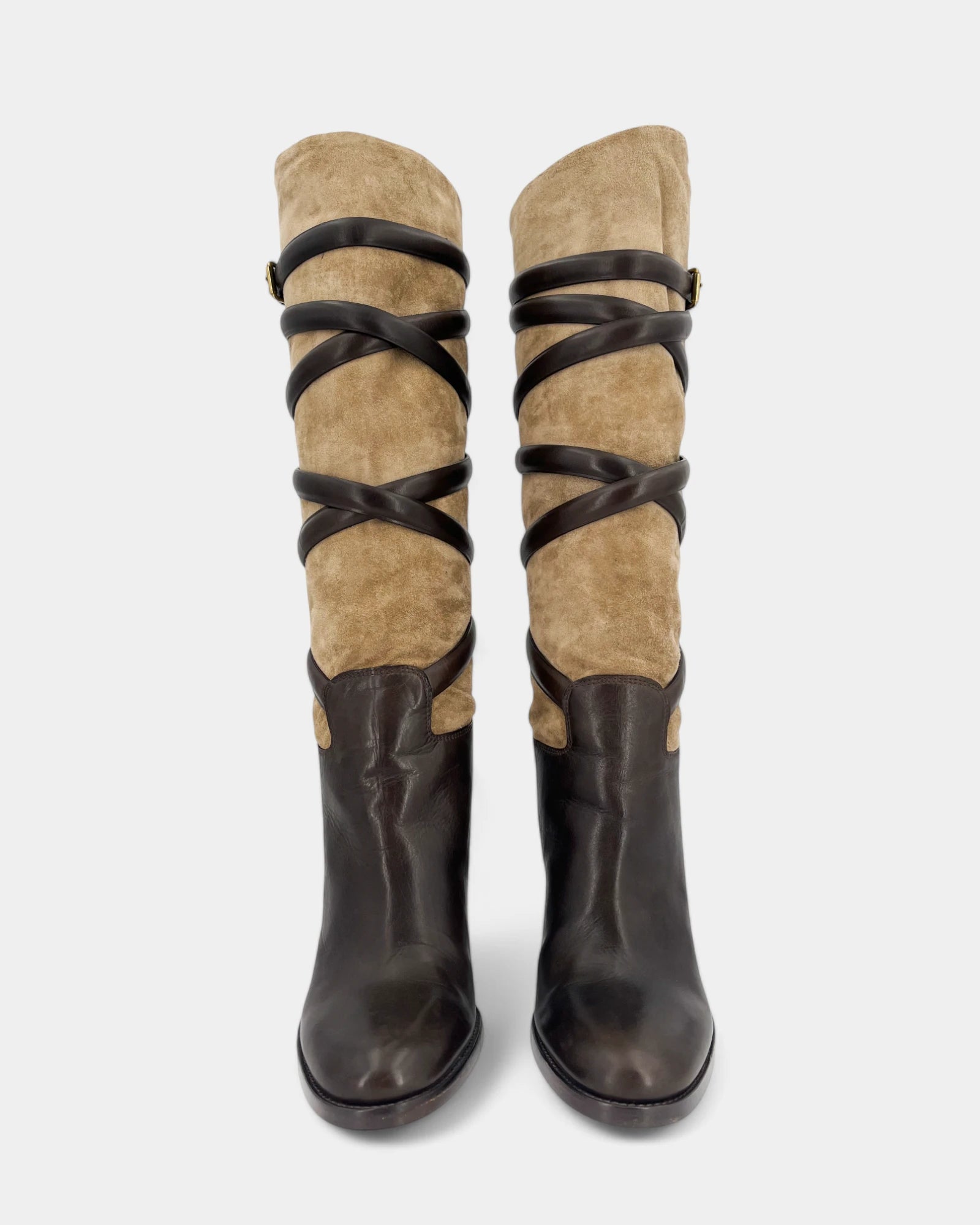 Bottes marrons et beiges en cuir