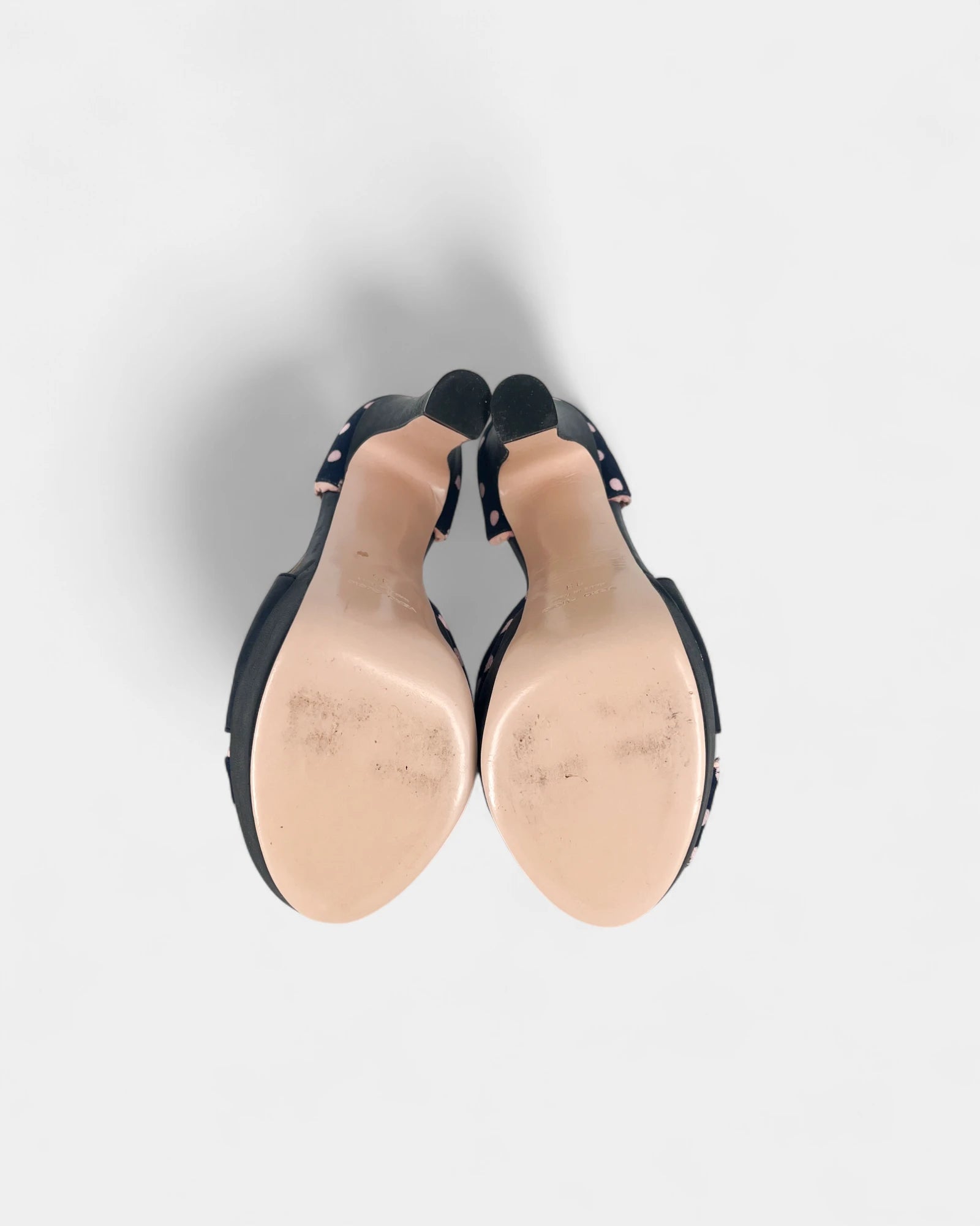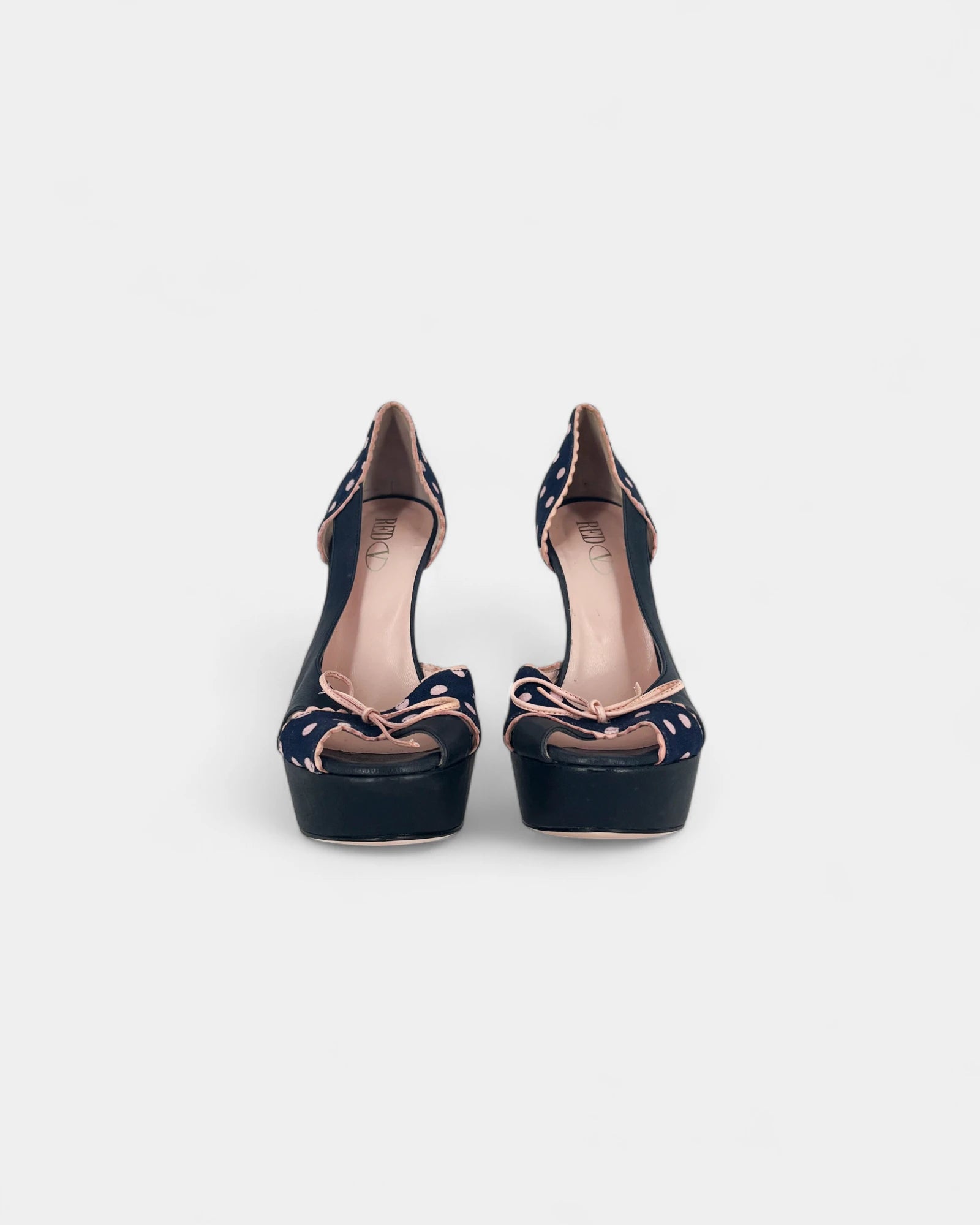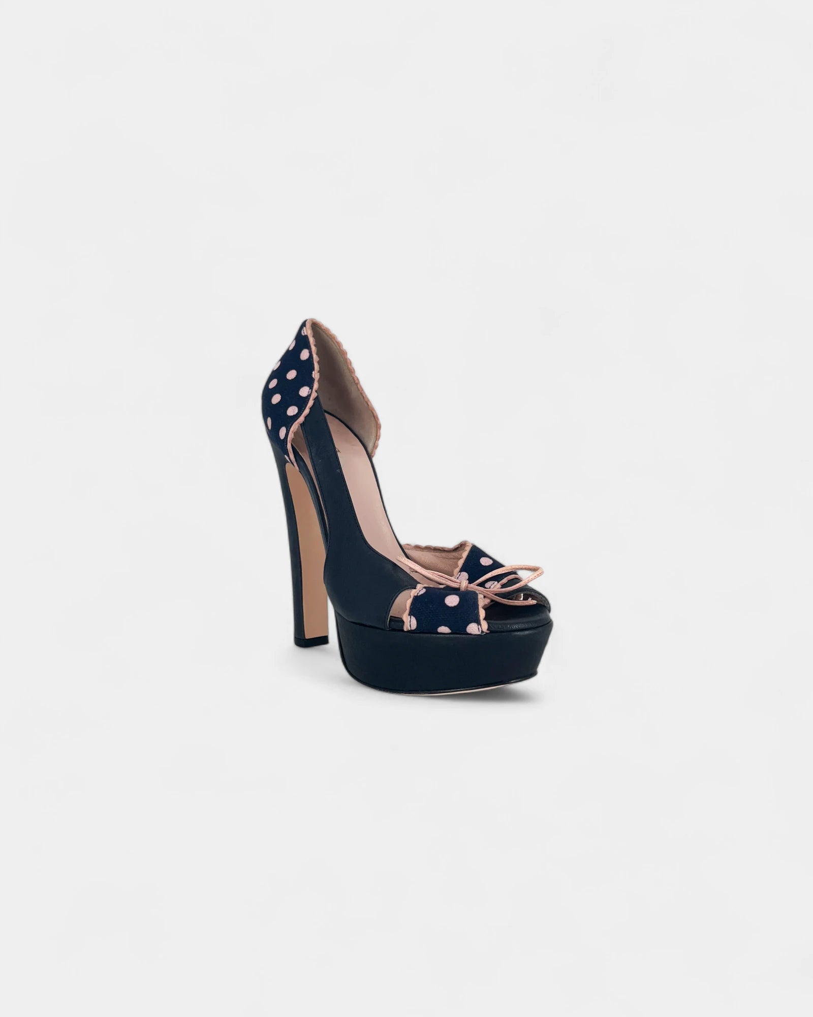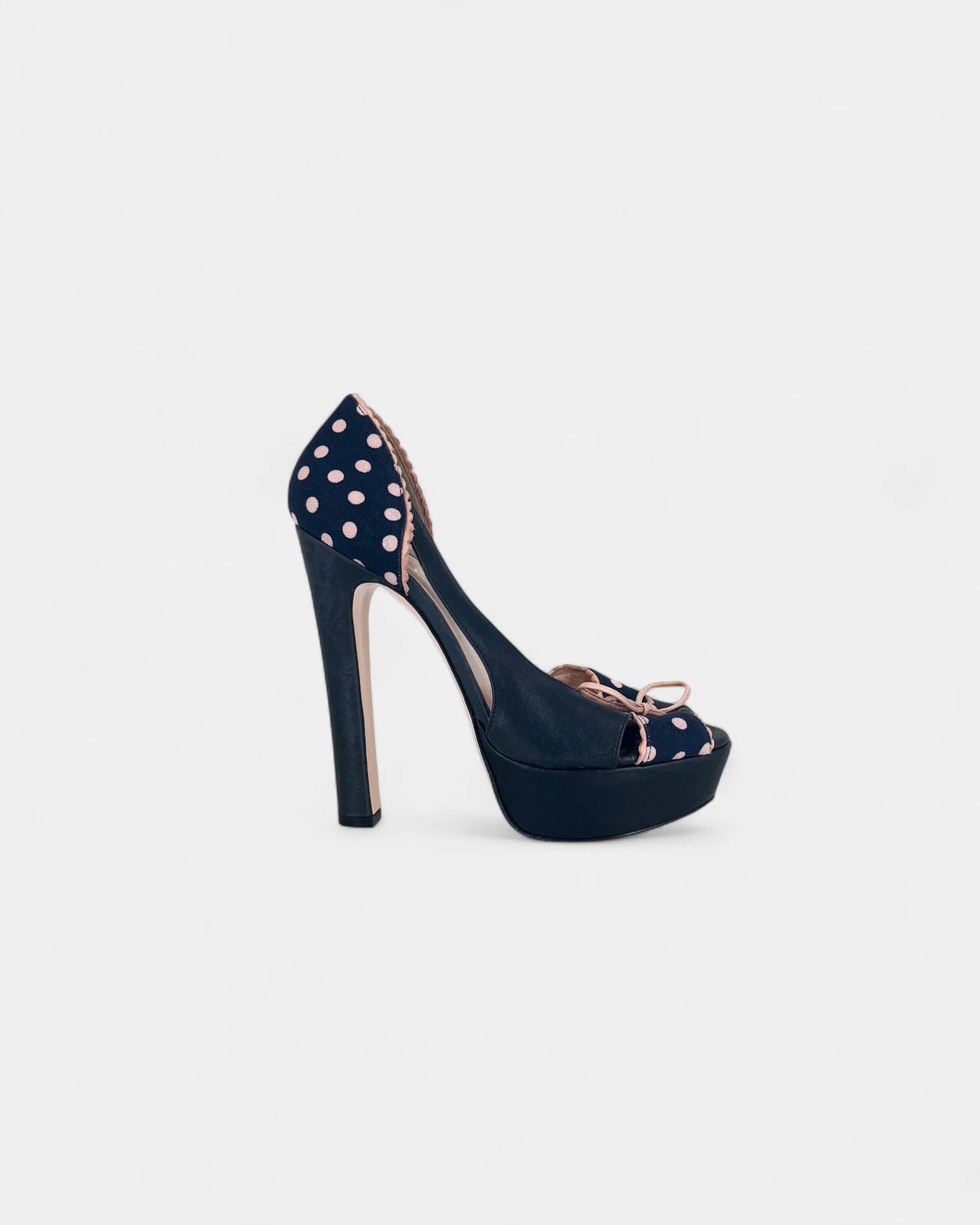 Escarpins bleus à pois roses