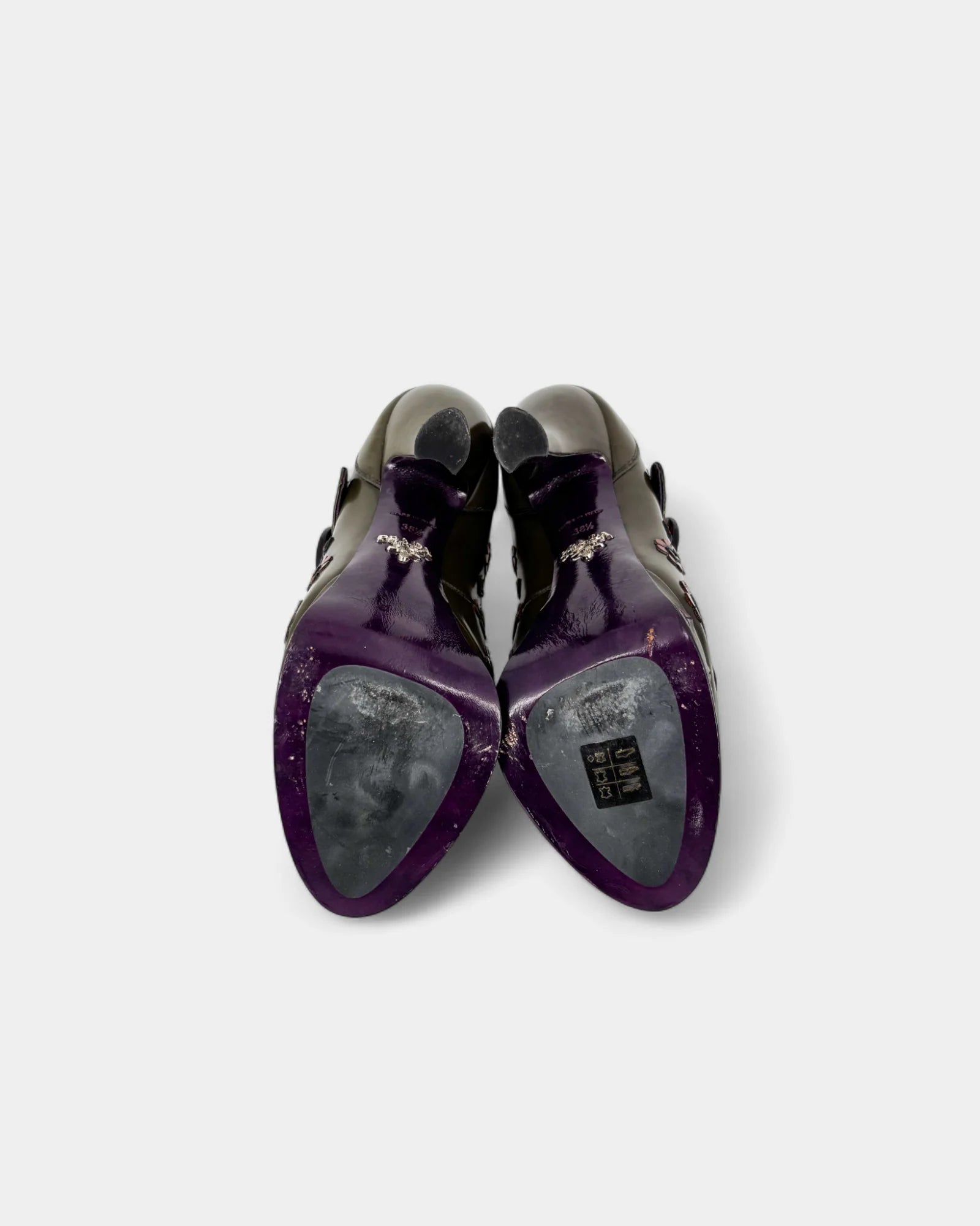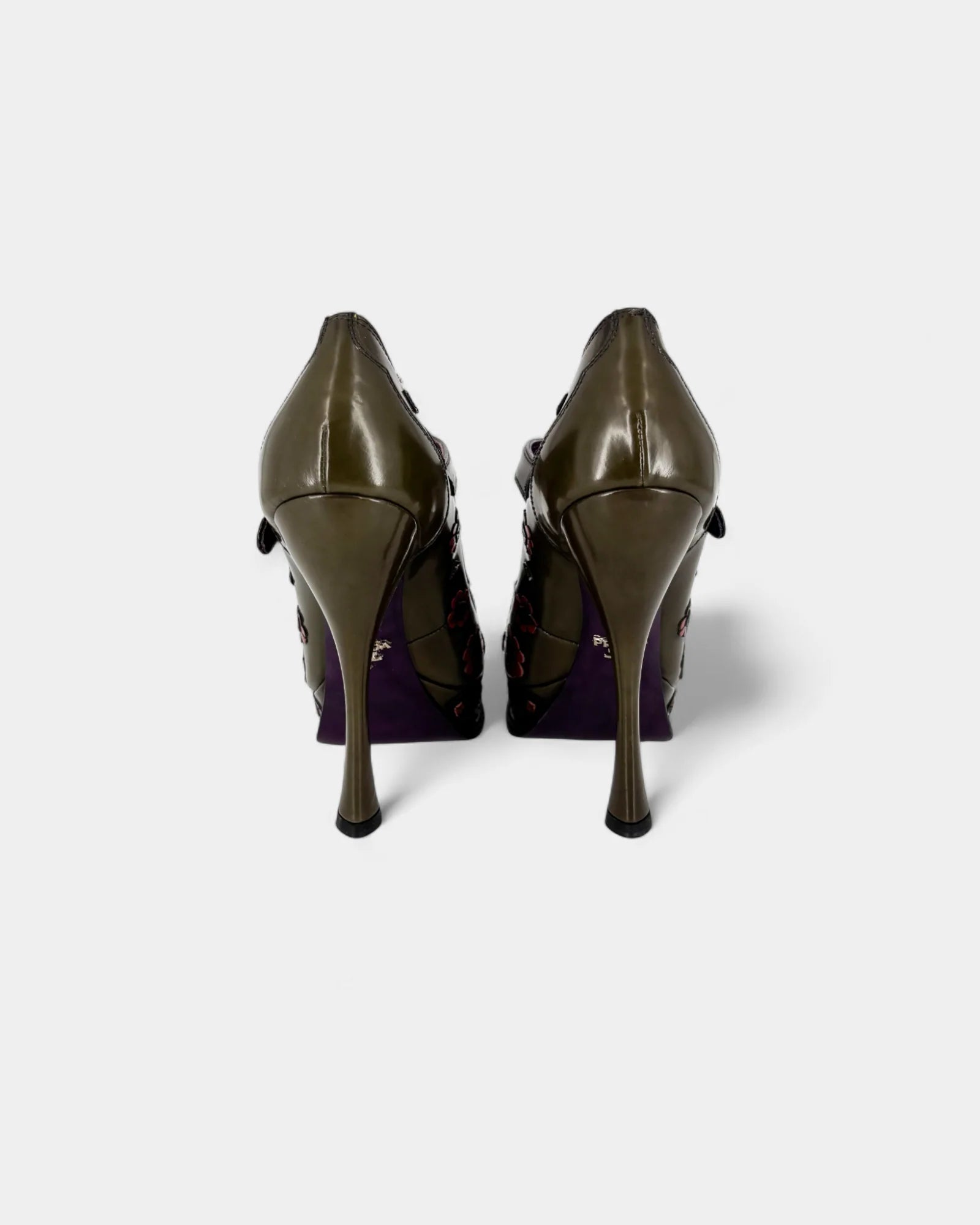 Escarpins en cuir kaki à motif floral