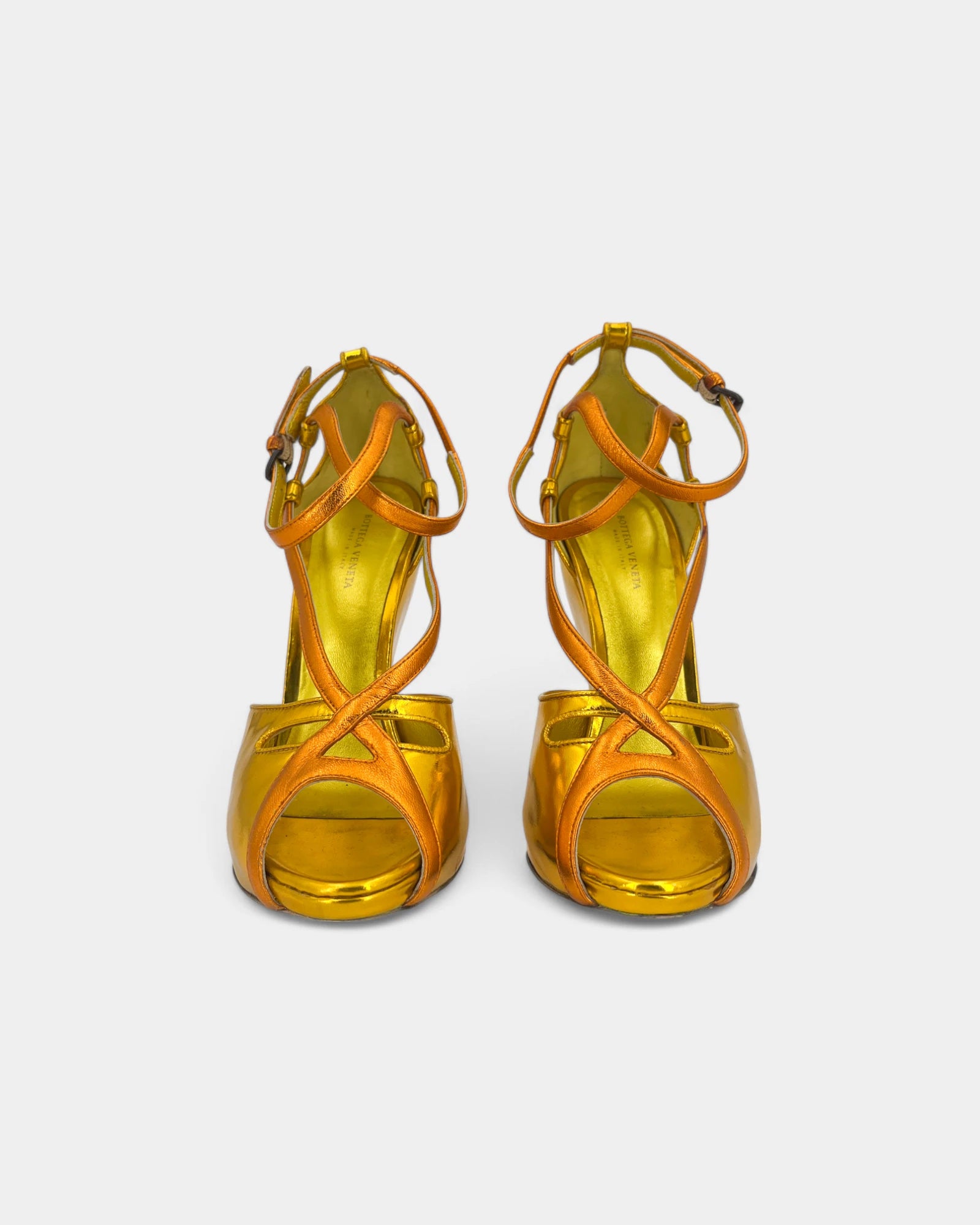 Escarpins jaunes métallisés à bout ouvert et talon compensé