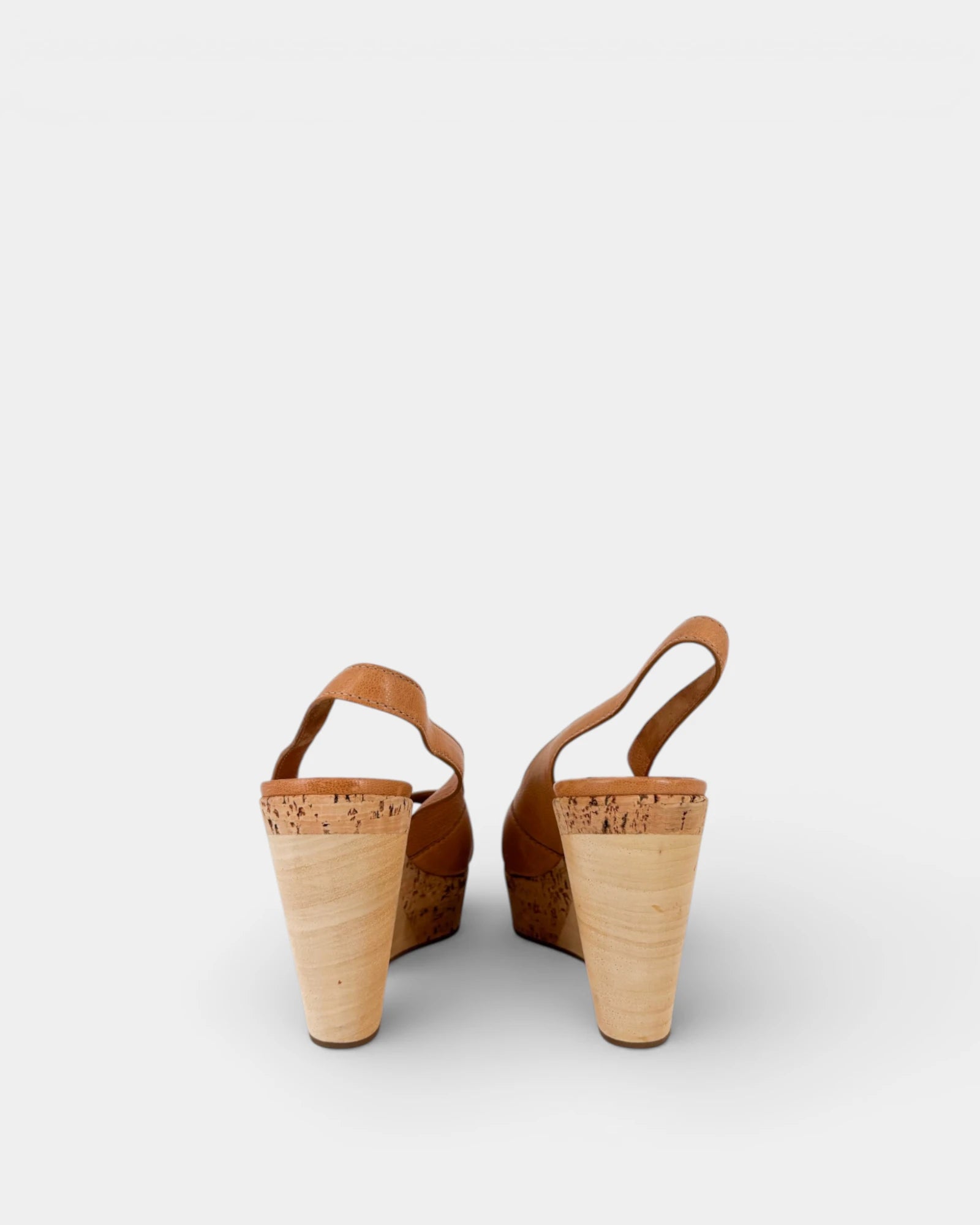 Sandales en cuir camel à talon compensé et liège