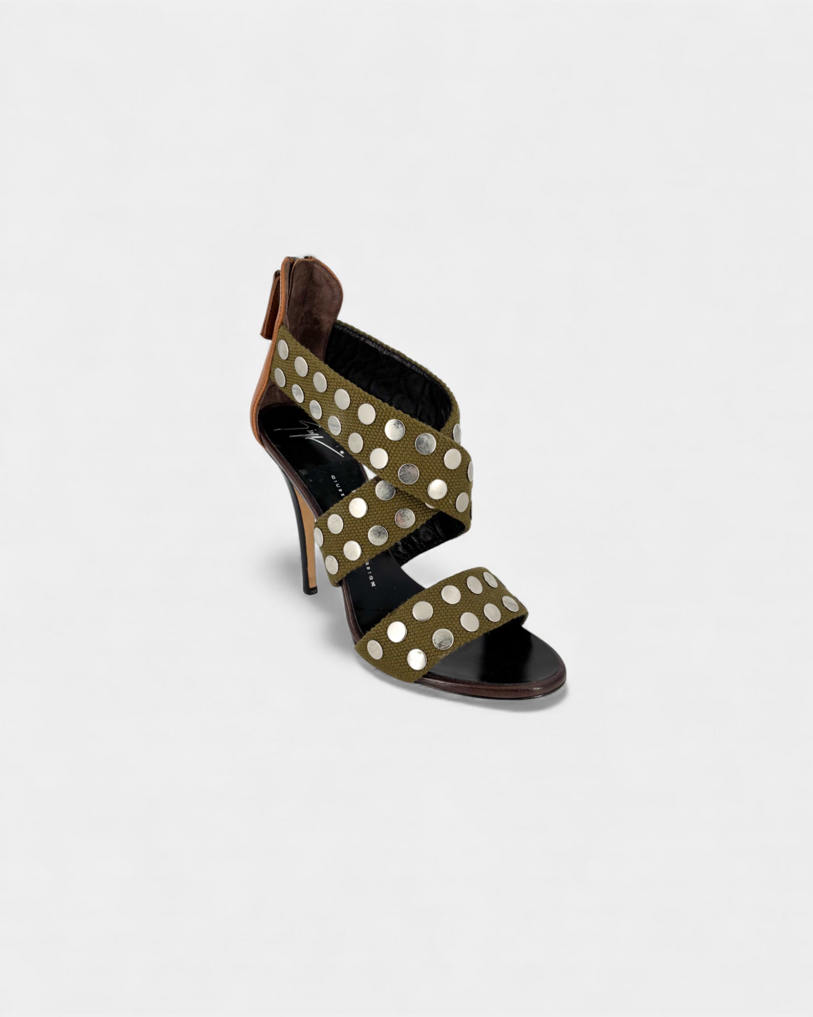 Sandales à bandes kaki cloutées