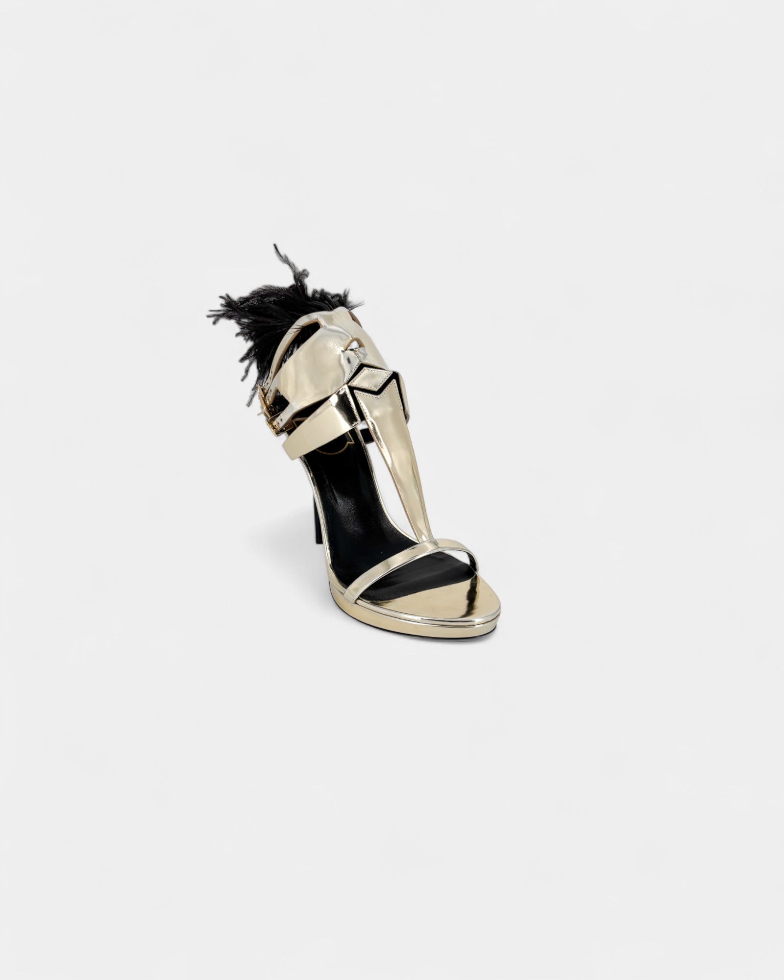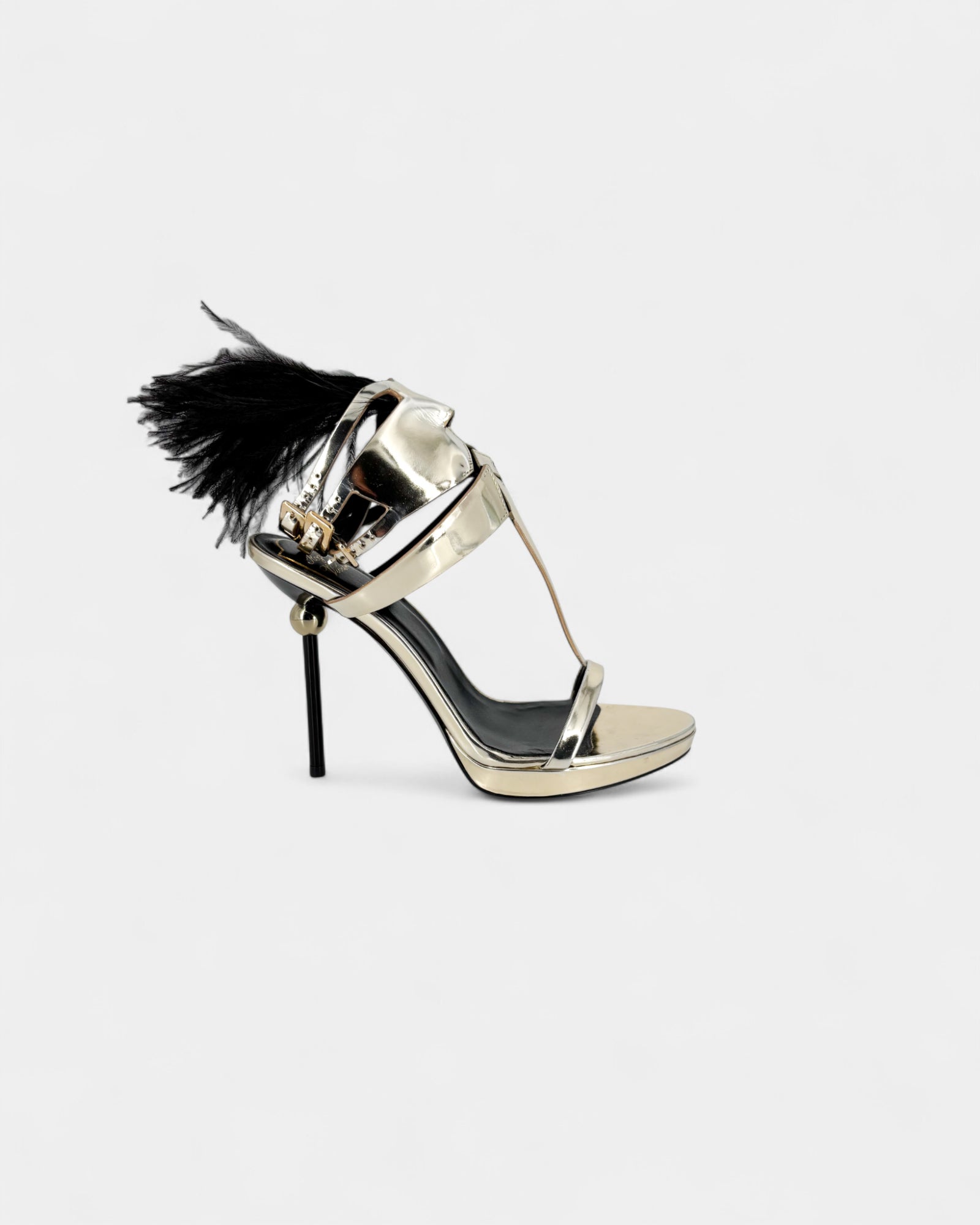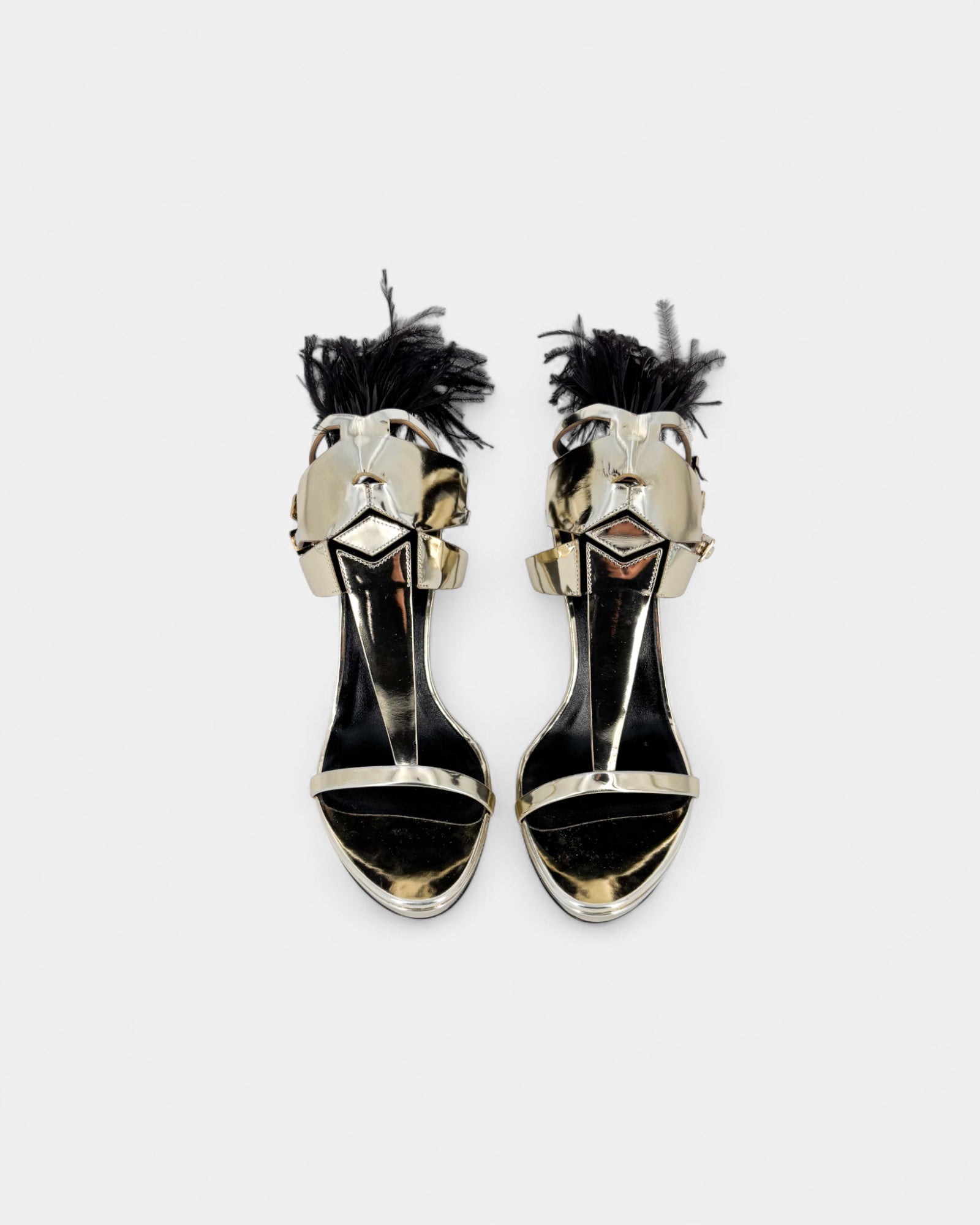 Sandales en cuir métallisé ornées de plumes