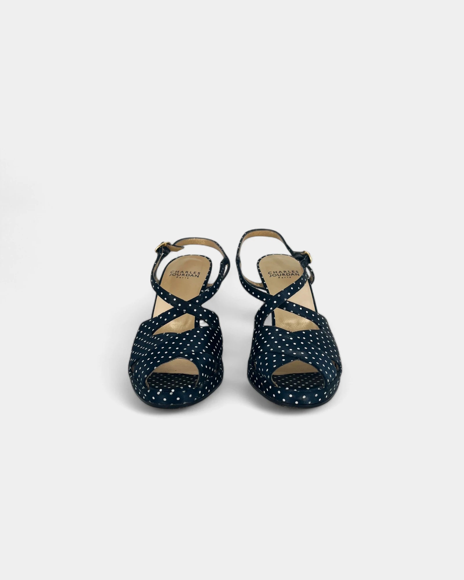Sandales bleues à pois et à talons