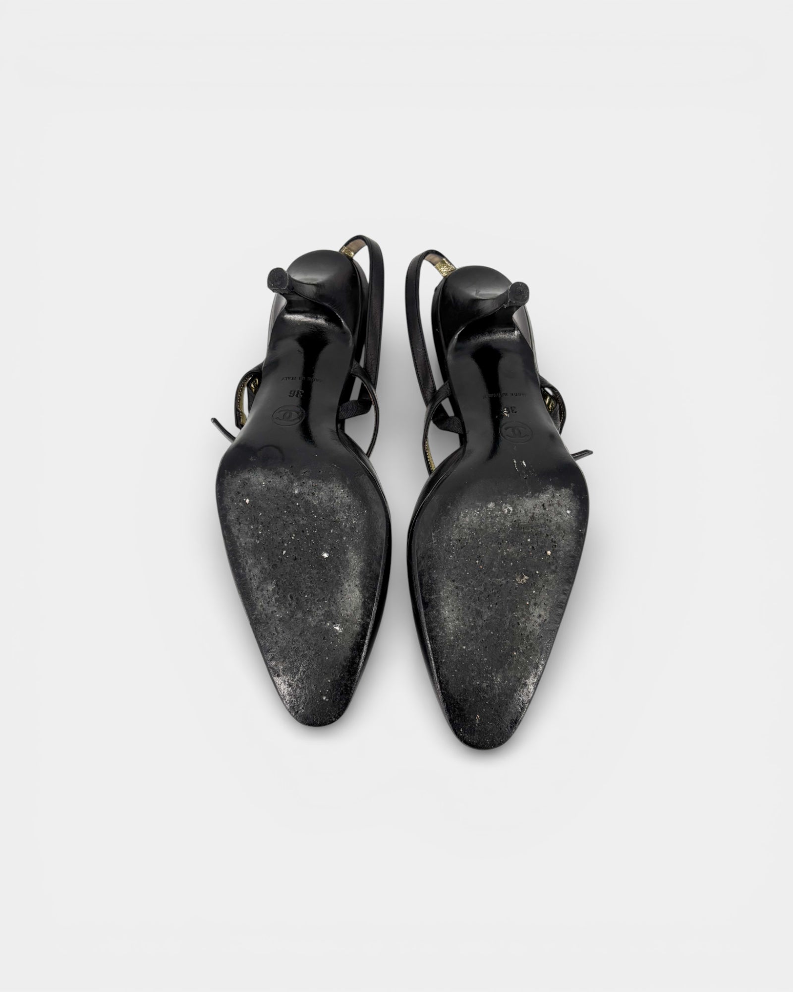 Escarpins slingback en cuir noir avec logo