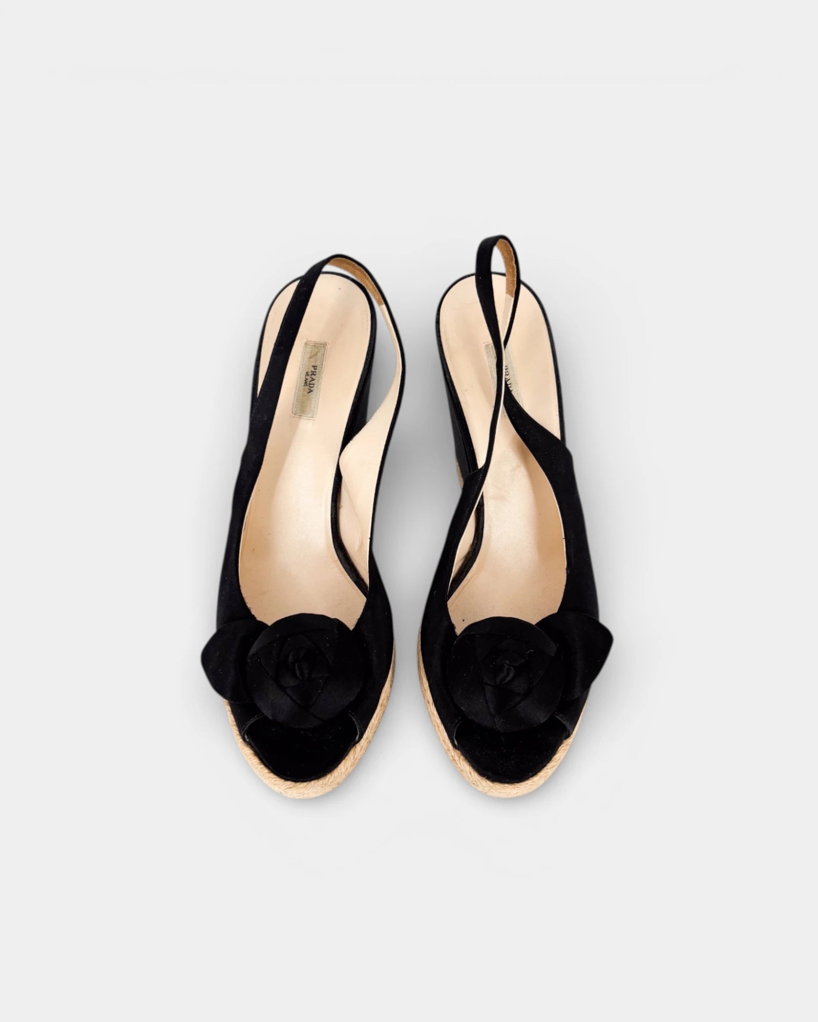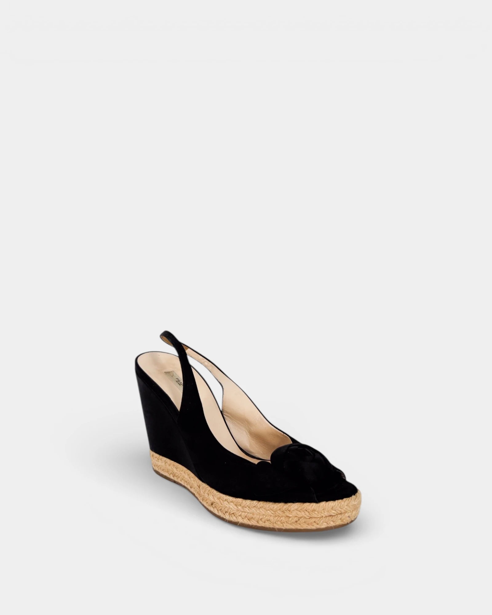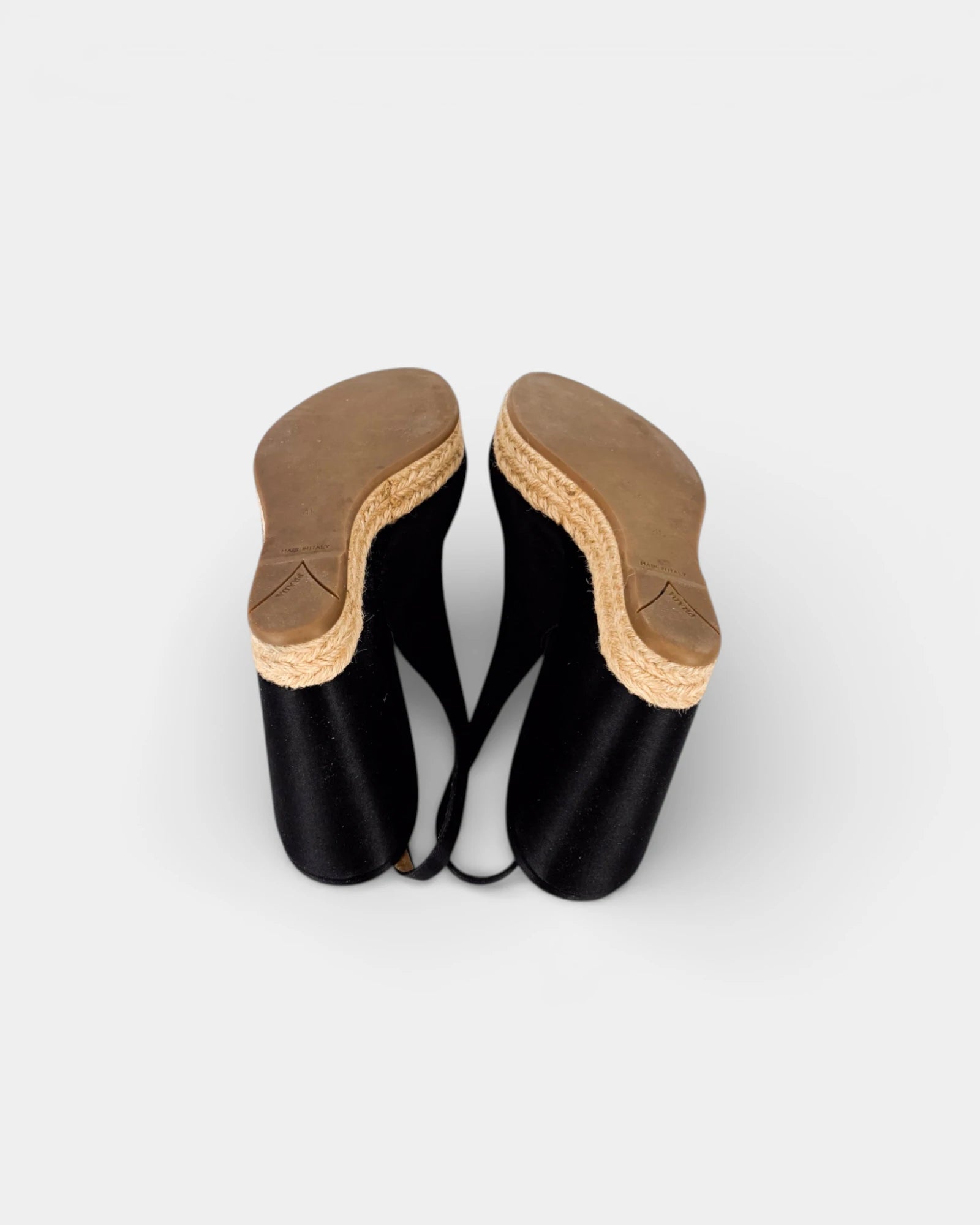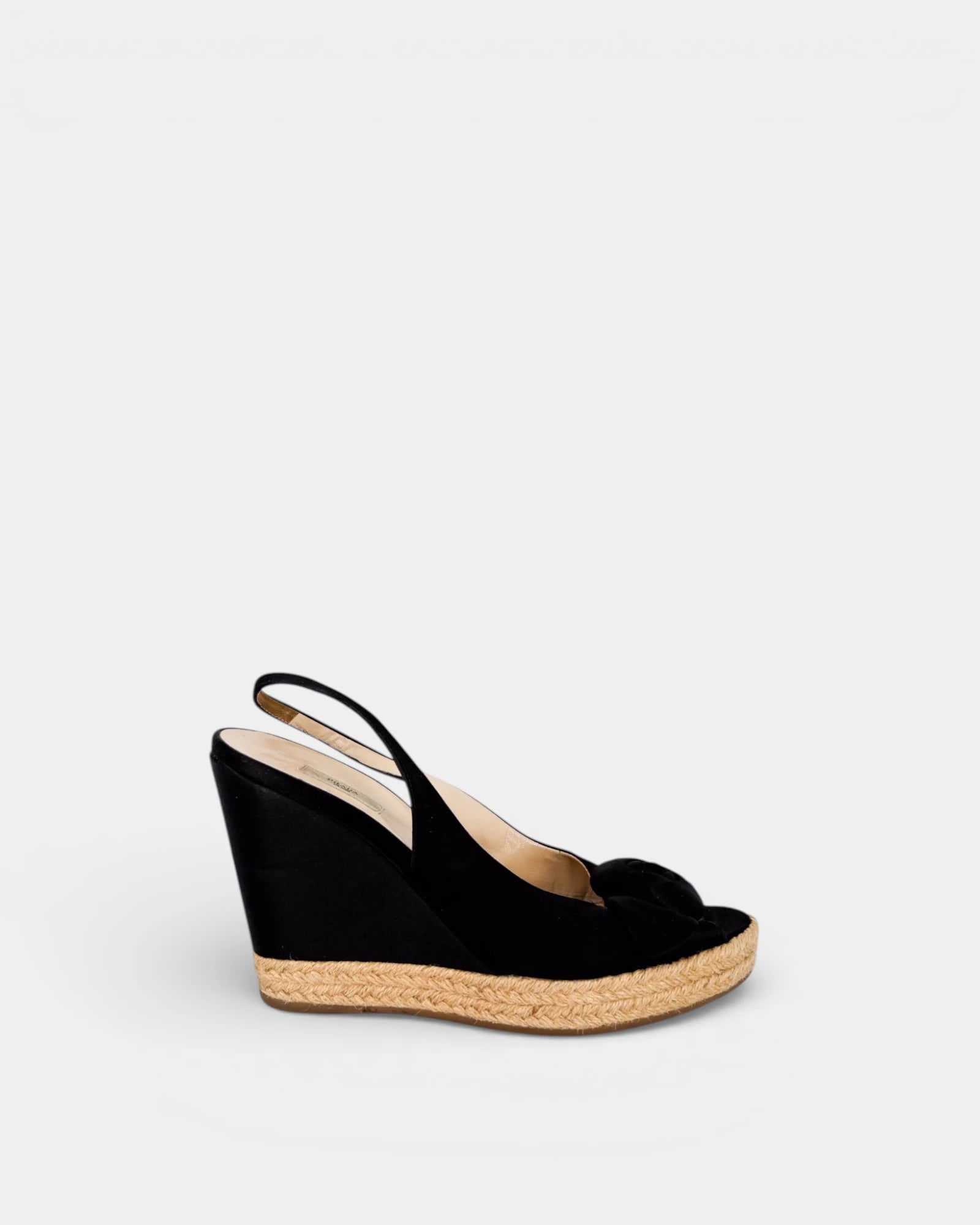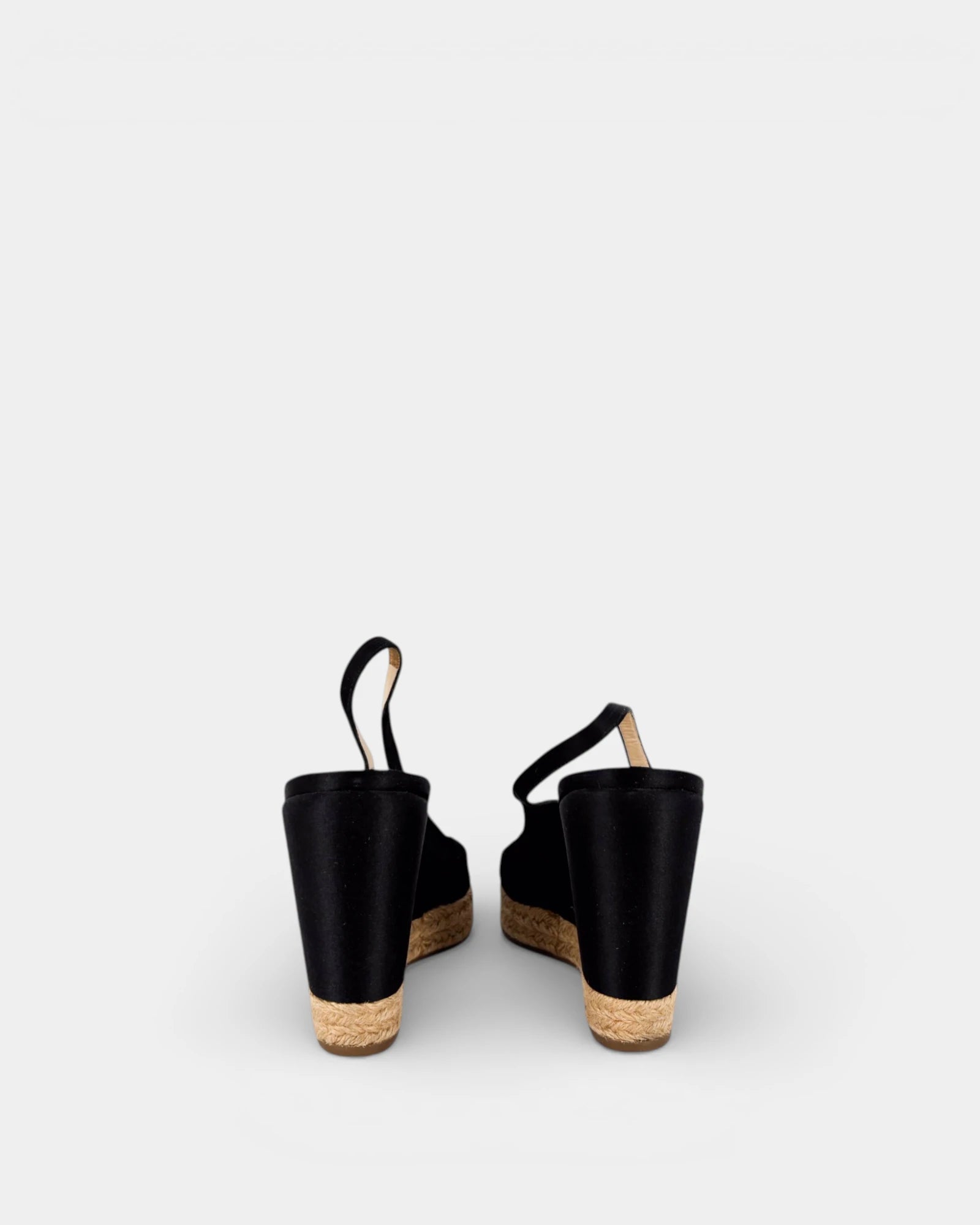 Sandales compensées en tissu noir à semelle en corde